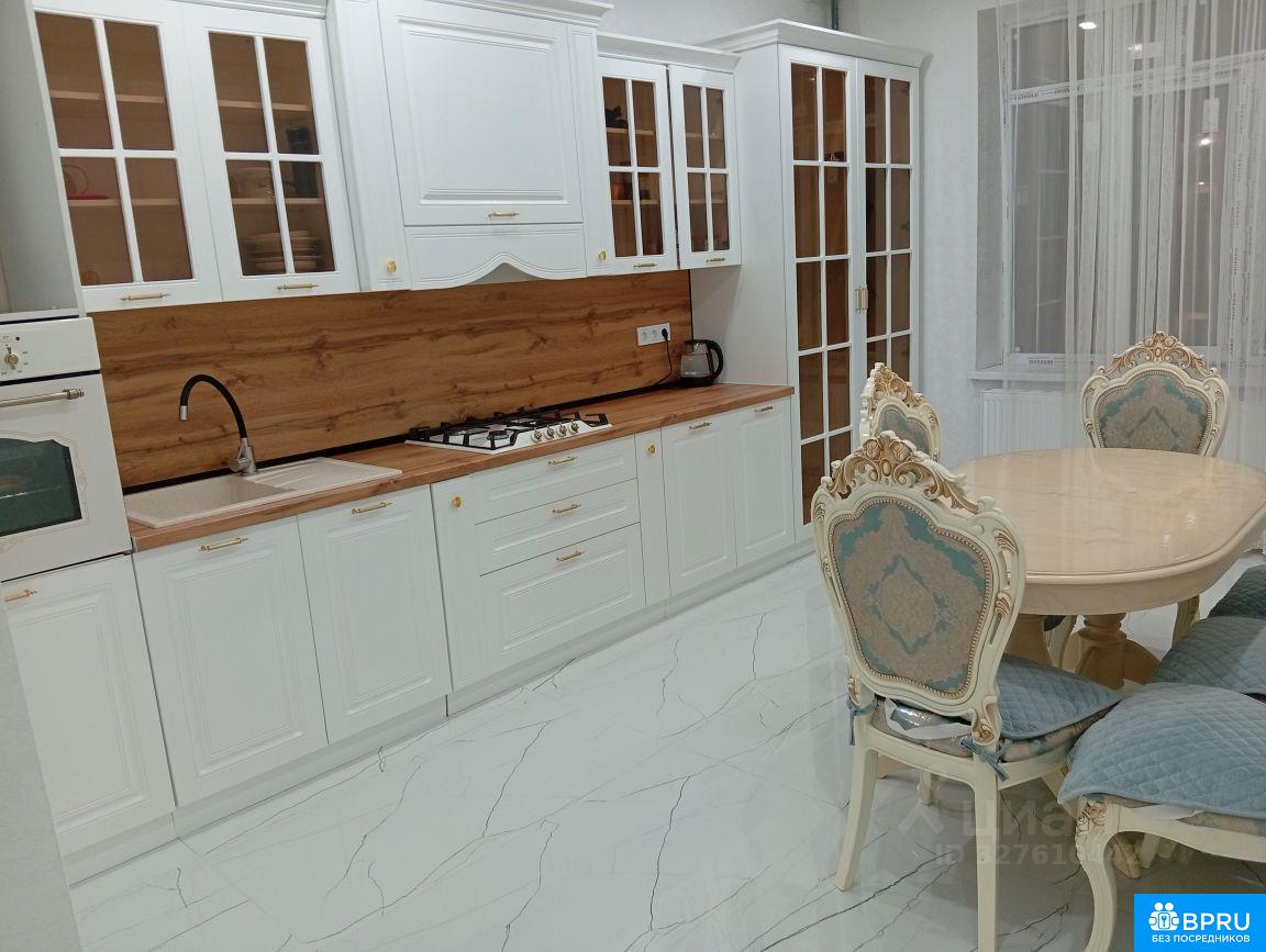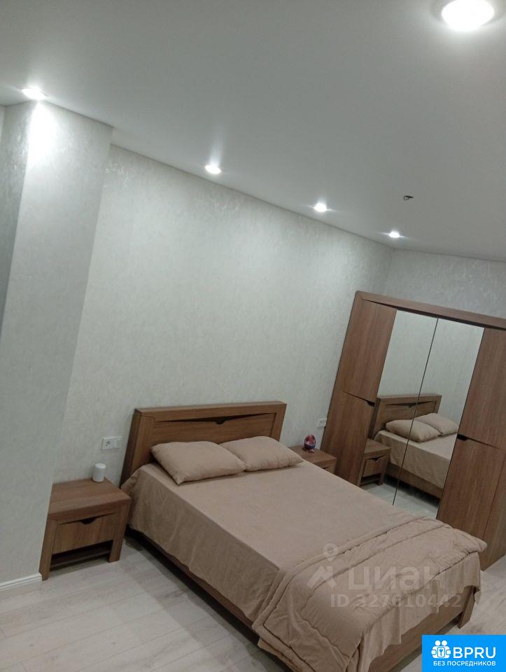 "Квартира двухкомнатная с большой кухней и просторной ванной комнатой. В большой комнате есть двуспальная кровать и большой шкаф, во второй комнате — раскладной диван и шкаф. На кухне большой стол и стулья. В доме есть лифт и парковка. Рядом находятся парк, магазины и школа."