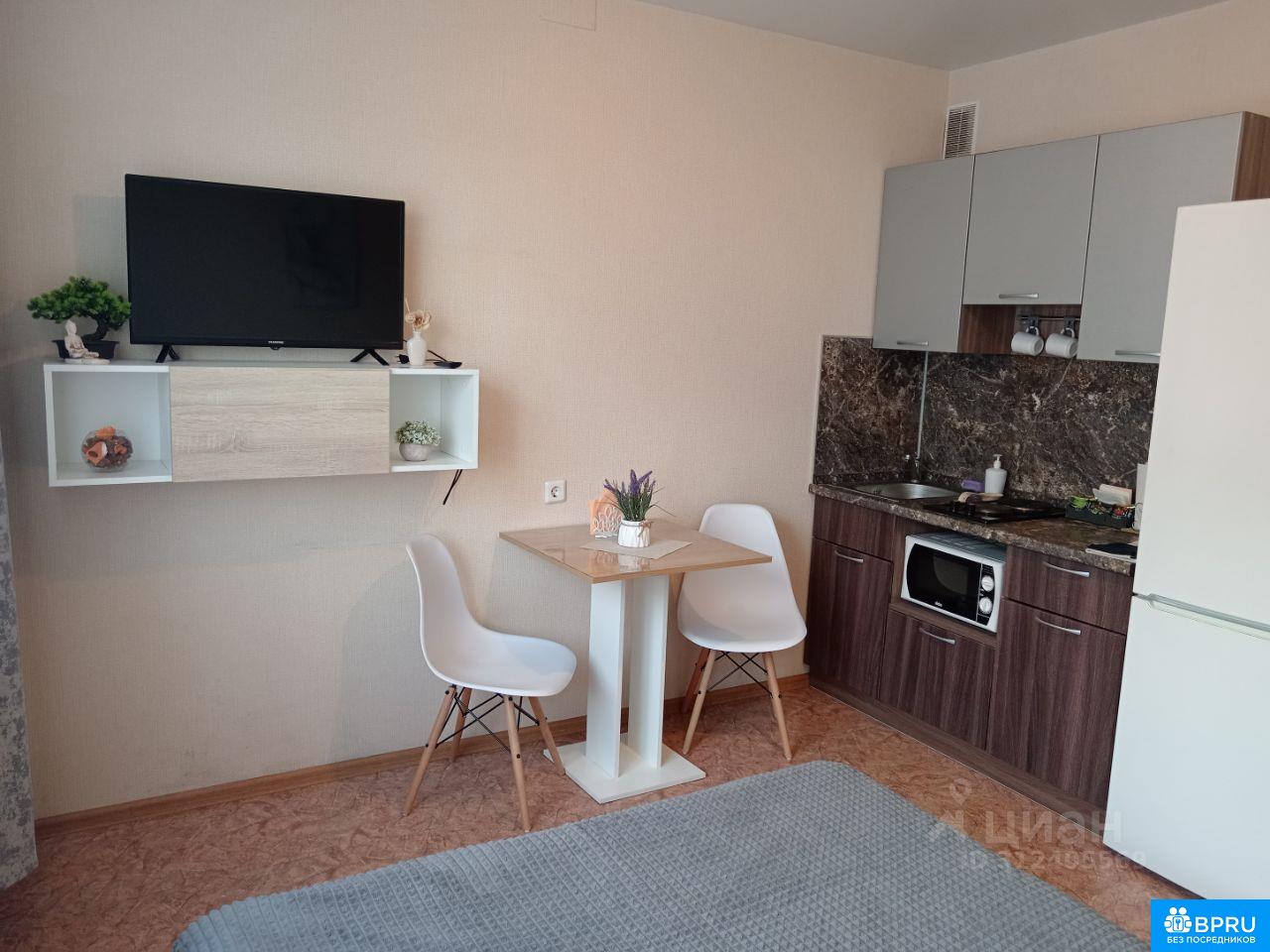 Сдается новая уютная квартира -студия сроком от 1 месяца от Собственника!В квартире есть все необходимое для комфортного проживания. Телевизор, стиральная машина , утюг, сушилка, фен, посуда для приготовления пищи, микроволновка, чайник, плита. При необходимости возможно предоставление комплекта пастельного белья,комплект полотенец.Есть Wi-Fi Рядом находятся магазины, аптека, Сбербанк, больница и детский сад. Аэропорт в 15 минут на транспорте. Автобусная остановка в 5минутах ходьбы. Хорошая транспортная развязка в любую часть города. Квартира не предоставляется для мероприятий и вечеринок! Курение в квартире строго запрещено!!!! Квартира подходит для порядочных платежеспособных клиентов, семейной пары либо для одного человека. Заселение по паспорту и договору.!