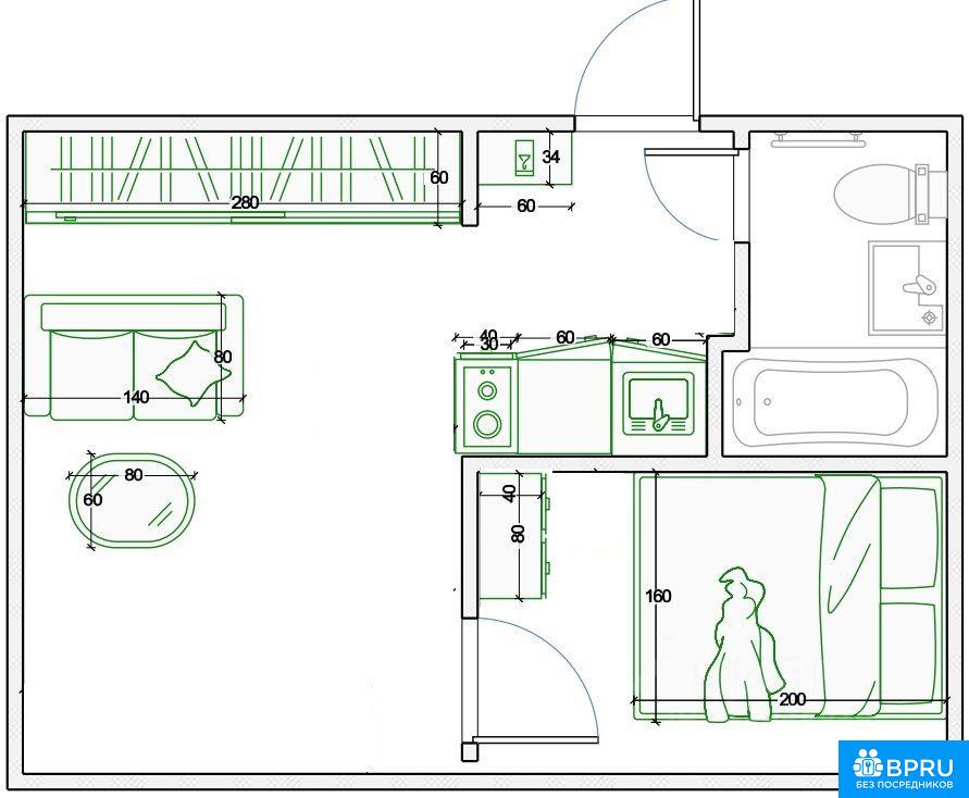 Сдается квартира впервые после капитального ремонта, в квартире новая мебель, матрас, кухонный гарнитур, сантехника и бытовая техника. Курить, в том числе электронные сигареты и содержать животных нельзя. В стоимость включены коммунальные платежи, отдельно оплачивается интернет и счетчики (электричество). Газ в квартире не используется. Квартира сдается семейной паре без детей или девушке. В квартире три помещения: кухня-гостиная, спальня и санузел.