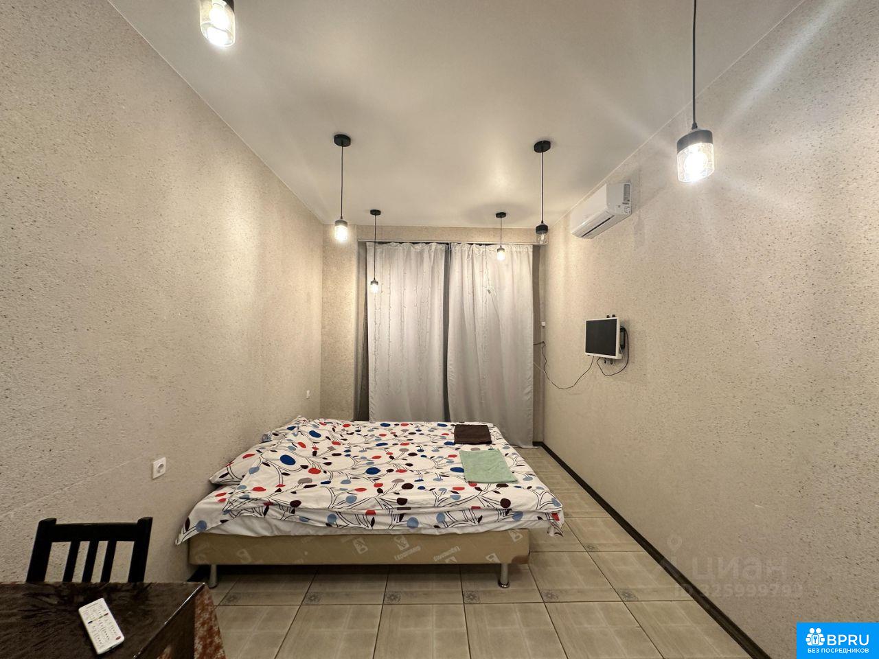 Сдаётся комфортная студия площадью 30 кв.м. на 1 этаже в 10-этажном доме на срок от 11 месяцев. Из техники есть: Телевизор Стиральная машина Холодильник Кондиционер Бойлер Микроволновка Пылесос Дом - кирпичный, окна выходят во двор. Во дворе есть бесплатная парковка.