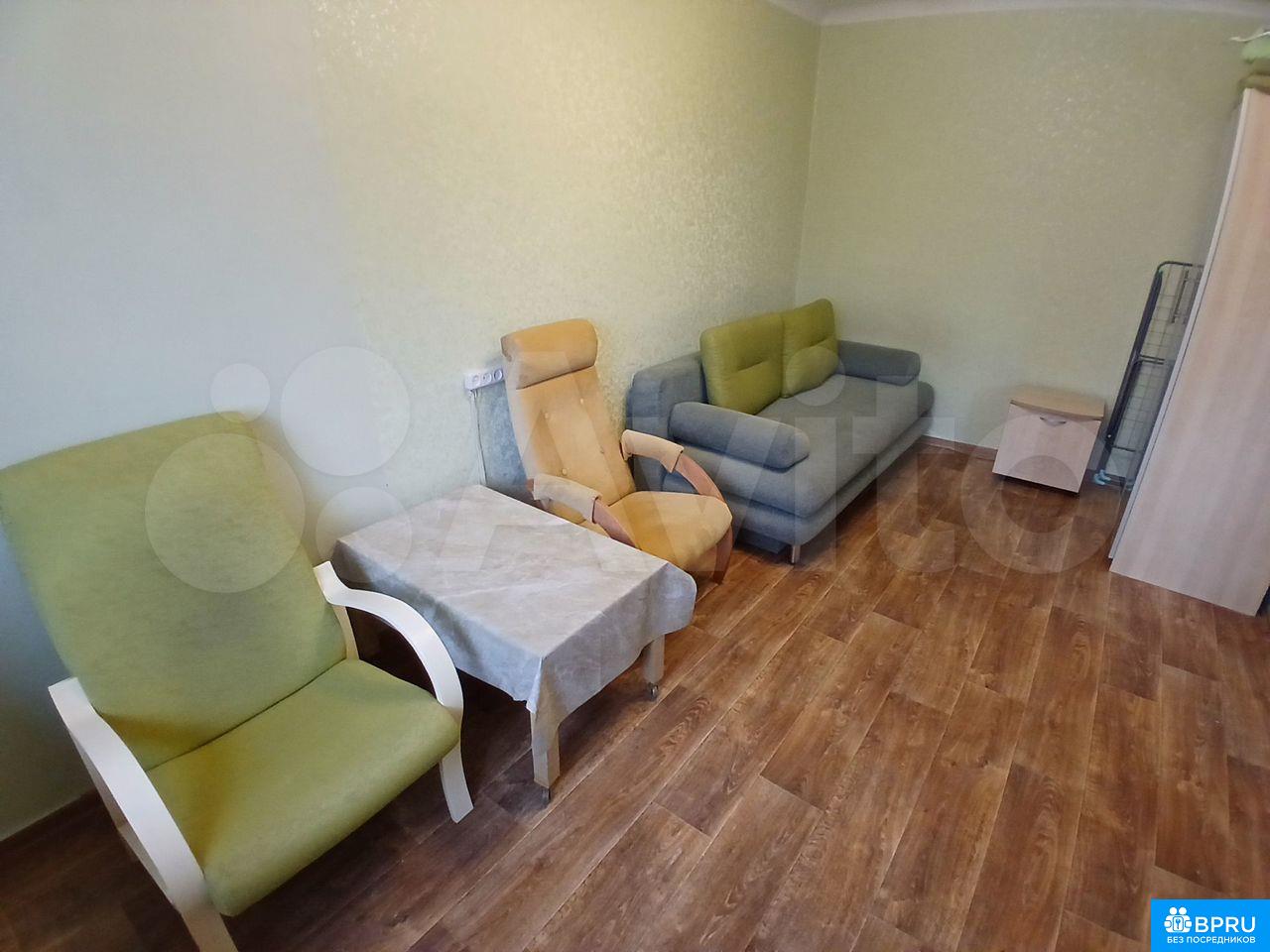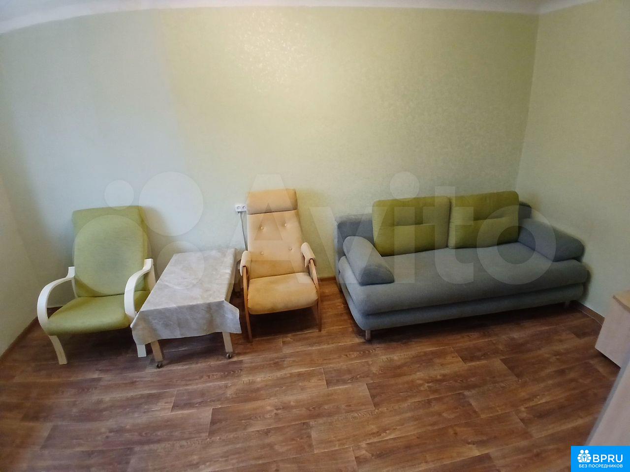 В квартире есть холодильник, микроволновка, стиральная машина, чайник, плита, водонагреватель. Два шкафа, два кресла, диван.