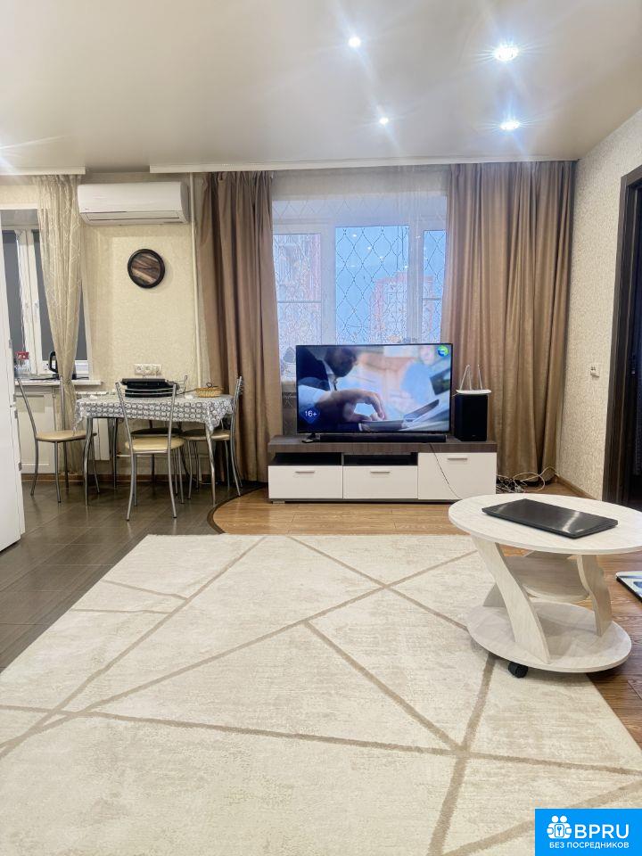 Сдаётся уютная двухкомнатная квартира общей площадью 41.9 кв.м. на третьем этаже трёхэтажного кирпичного дома. Дом расположен в районе метро Буревестник, до которого можно добраться за 9 минут на автомобиле. Квартира с качественным евроремонтом полностью готова для комфортного проживания. Просторная жилая площадь в 30 кв.м. и кухня площадью 6 кв.м. обставлены необходимой мебелью. В квартире есть кондиционер, холодильник, телевизор и стиральная машина. Санузел совмещённый, с душевой кабиной, окна выходят на улицу, что обеспечивает хорошее естественное освещение. Дом в хорошем состоянии, обеспечен интернетом. Рядом с домом находятся магазины, что делает покупки быстрыми и удобными. Условия аренды: договор аренды заключается напрямую с собственником. Комиссия отсутствует. Залог составляет размер месячной аренды. Рассматриваются арендаторы без домашних животных. Возможно проживание до трёх человек.