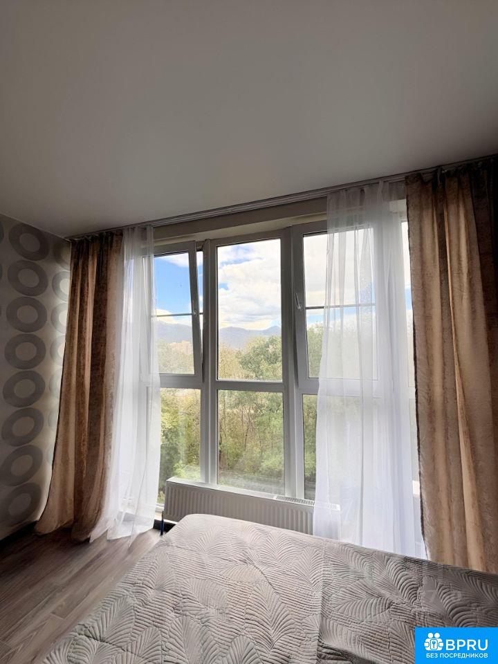 Сдается просторная квартира-студия с видом на горы. Квартира просторная и светлая. Есть все необходимое: - кровать с комфортным матрасом + постельное - просторный шкаф - кухня с микроволновкой, холодильником - сплит-система - стиральная машина, сушилки для одежды Студия расположена в новом ЖК Мелодия леса - зеленый уютный район. Индивидуальное отопление, водяные накопительные баки. Рядом есть пункты выдачи Озон и Вайлдберриз, кофейня, церковь и фитнес студия. Недалеко Пятерочка и Лента. Квартира от собственника, без комиссии агентству. Сдается на длительный срок по договору. Оплата за месяц (25к) + залог (25к) + коммунальные (~3к летом)