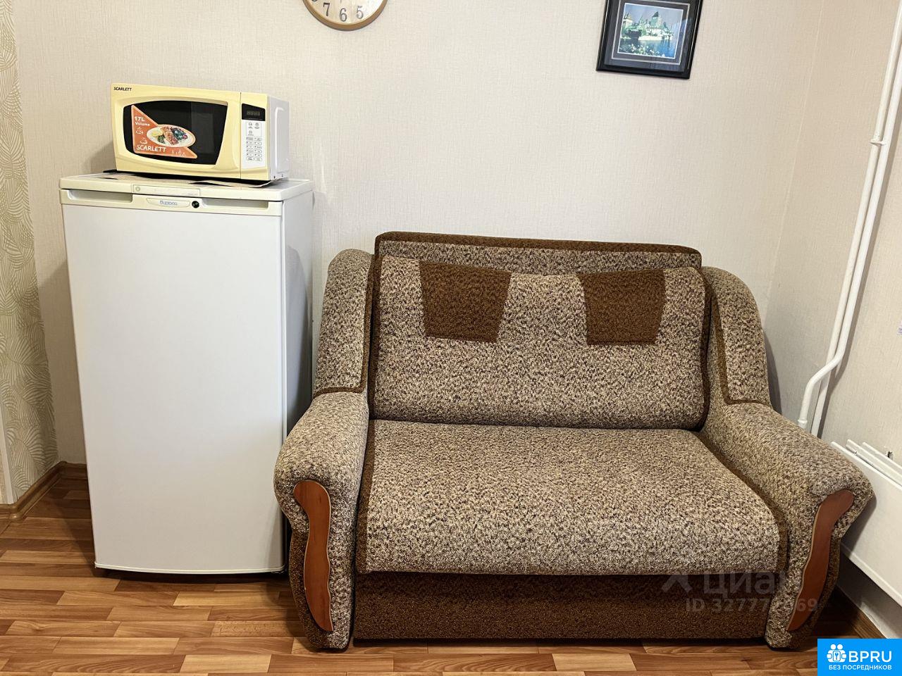 Уютная 1 комнатная квартира. Диван на кухне может служить дополнительным спальным местом. Окна выходят на институт бизнеса. Рядом остановка общественного транспорта, магазины.