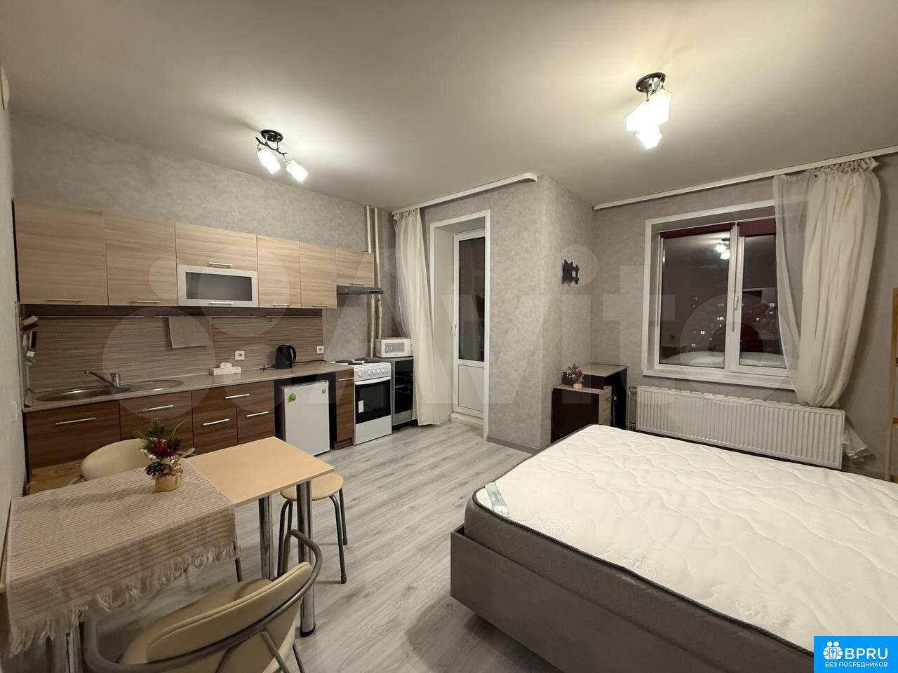 Сдается студия с ремонтом на длительный срок, от собственника.Квартира расположена на 8 этаже, есть пассажирский и грузовой лифт.Из техники: телевизор, стиралка, холодильник, плита, микроволновка, чайник.