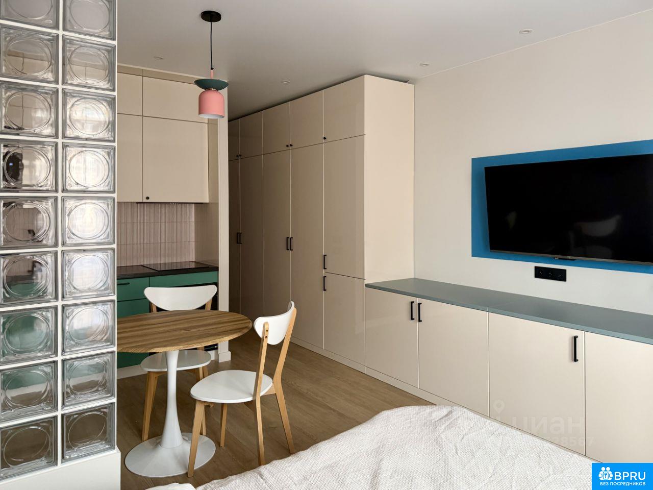 Дизайнерская светлая студия с новым ремонтом. Есть все необходимое для жизни, включая постельное белье, посуду, полотенца и тп. Стиральная, посудомоечная машина, плита, духовка, микроволновка, кондиционер, большой смарт телевизор. Большая зона хранения (шкафы), огромная лоджия с подогреваемым полом. Коммуналка включена в цену. Счетчики оплачивает арендатор. В цену включен 1 визит службы клининга в месяц. Сдается арендаторам без животных и детей.