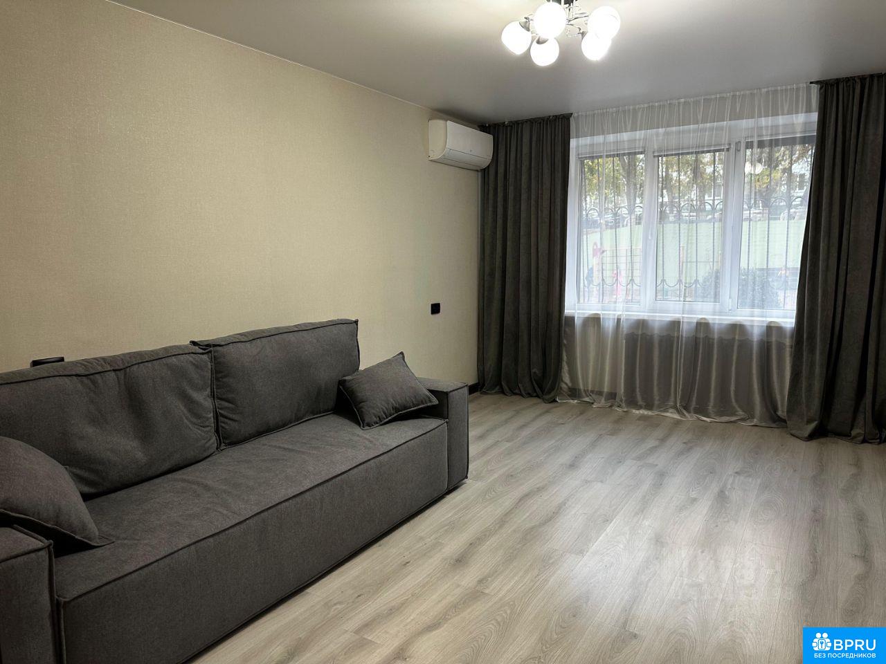 Сдается уютная однокомнатная квартира (45 кв.м) в Октябрьском районе. • Расположение: 1 этаж. • Инфраструктура: Школа, детский сад, больницы и медицинские центры, Магнит Экстра, множество магазинов, Северный рынок и остановка общественного транспорта - в шаговой доступности. Быстрая доступность до ТРЦ. Ухоженный двор с закрытой детской площадкой и видеонаблюдением. Свежий современный ремонт. Теплая квартира, без проблем с отоплением. Невысокие коммунальные платежи. Полностью меблирована новой мебелью. Вся бытовая техника: Bosch, LG и Samsung. Две сплит-системы (на кухне и в комнате). Вместительная гардеробная. Кухня оснащена микроволновкой, духовым шкафом и плитой. В комнате имеется телевизор, в кухне есть выходы под ТВ. Просторная лоджия со стеллажом. Личный тамбур с входной группой (обувница, вешалка и зеркало). Парковка во дворе дома наземная, без крыши и рядом с домом крытая.