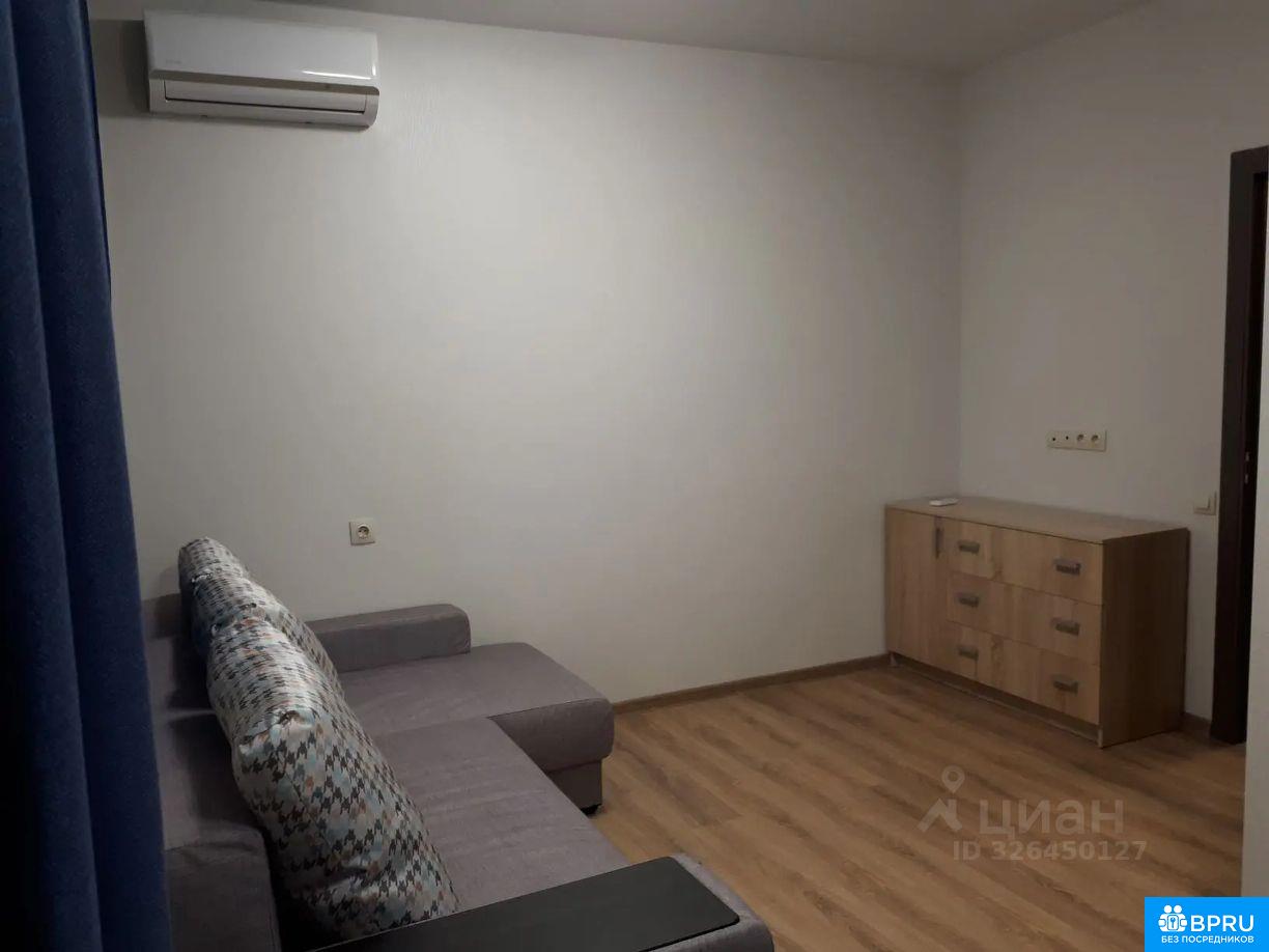 Сдаётся уютная студия в современном доме, построенном в 2018 году. Квартира расположена на 7 этаже 14-этажного здания и имеет общую площадь 26 кв. м, из которых 16 кв. м — жилая. Высокие потолки 2.8 метра и окна, выходящие во двор, создают атмосферу простора и уюта. Индивидуальное отопление, оплачивается по счетчику. Квартира с евроремонтом: в комнате и на кухне есть вся необходимая мебель. Для вашего комфорта установлены кондиционер, холодильник, стиральная машина и телевизор. Ванная комната оборудована ванной. Из квартиры есть выход на балкон, где можно наслаждаться утренним кофе. Проведен интернет, поэтому можно работать и отдыхать без забот. Дом оснащён пассажирским и грузовым лифтами, а также наземной парковкой для вашего автомобиля. Район тихий и ухоженный, с развитой инфраструктурой. Рядом находятся школы, детские сады, клиники и магазины — всё, что нужно для комфортной жизни. Условия аренды: прямая аренда от собственника. Долгосрочная аренда. Квартира идеально подходит для одного человека или пары. Без животных.