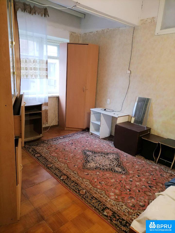 Комната в комуналке на четырёх соседей, комната 25 метров, два спальных места, одно двухместном, второе одноместные. Удобства общие. Стиралки нет