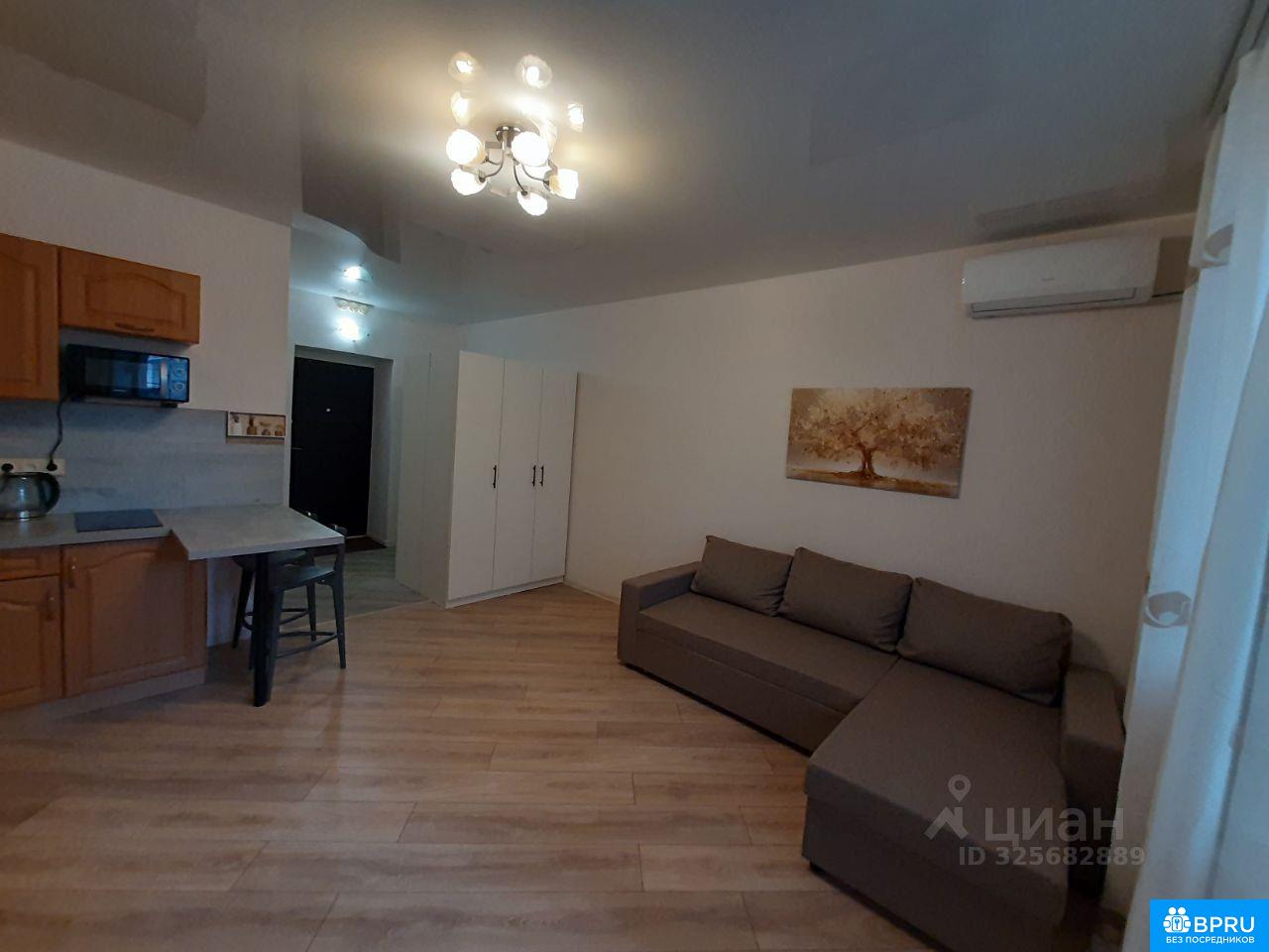 Сдаётся уютная студия на первом, высоком этаже восьмиэтажного дома. Первая сдача после ремонта, почти вся мебель и техника новые. Общая площадь составляет 30 кв. м, из которых 20 кв. м — жилая площадь. Пространство разделено мебелью на зоны: гостиную, кухонную и зону прихожей. Утепленный балкон готов к круглогодичному использованию. В квартире есть всё необходимое для комфортного проживания одного или двух человек. Также имеется вся необходимая техника: кондиционер, холодильник, телевизор, микроволновая печь и стиральная машина. Совмещённый санузел с ванной. Дом кирпичный, очень теплый, имеет собственную котельную. Консьерж круглосуточно, территория двора закрытая, с парковкой. Двор и подъезд содержится в чистоте, во дворе детская и спортивная площадки, лавочки для отдыха, цветники. Рядом с домом находятся все необходимые объекты инфраструктуры, много магазинов. До центрального рынка 15 минут на транспорте.