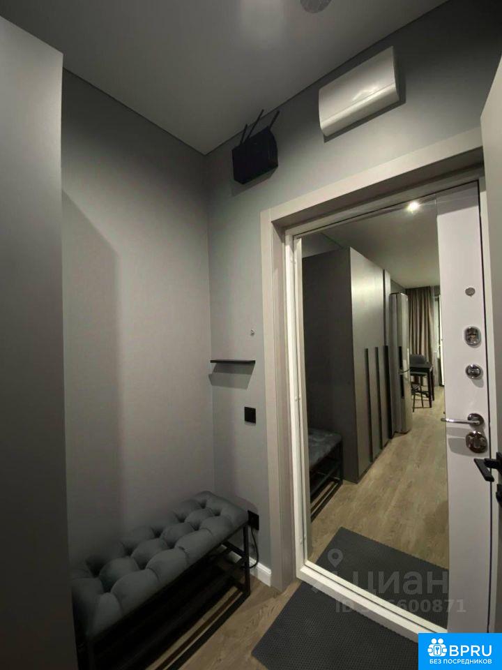 Сдаётся стильная студия с современным ремонтом в кирпичном доме 2023 года постройки. Собственник. Квартира находится на 23 этаже из 24, потрясающий вид из окна. В квартире выполнен евро ремонт. Внутри есть всё необходимое для комфортного проживания: холодильник, стиральная и посудомоечная машина, индукционная плита, чайник, шкафы, телевизор(на фото отсутствует, стоит новый смарт тв 43 диагональ). Просторная лоджия, подойдет под рабочий кабинет. Дом оснащён консьержем и пассажирским лифтом, а также имеет подземную парковку(места сдаются в аренду). Во дворе закрытая территория со спортивной площадкой. Курение допускается на балконе, проживание с животными запрещено. В доме находится озон,вайлдберриз, аптека и пятерочка. Парковая зона для прогулок, транспортная остановка прям возле дома. Квартира освобождается с 16 февраля.