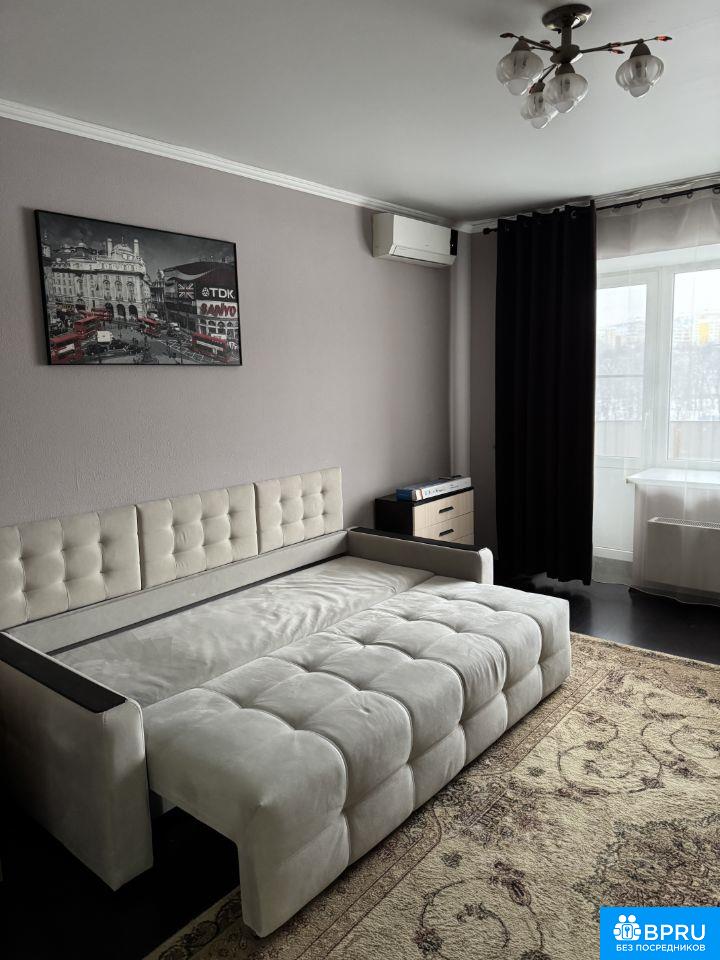 Сдается уютная квартира на 10 этаже. В квартире выполнен евро ремонт. Просторная гостиная (спальня) с раскладывающимся диваном, имеется телевизор, много места хранения. Кухня оснащена современной техникой, включая холодильник, плиту, микроволновку и духовой шкаф. Ванная комната совмещенная, с качественной сантехникой и стиральной машиной. В прихожей предусмотрен гардеробный шкаф. Из окон открывается живописный вид на двор. Дом оснащен пассажирским и грузовым лифтами, а также открытой парковкой во дворе. много детских площадок, школа и садик в шаговой доступности. Магазины также в шакговой доступности.Курение в квартире запрещено, но можно проживать с детьми. Животные не допускаются.