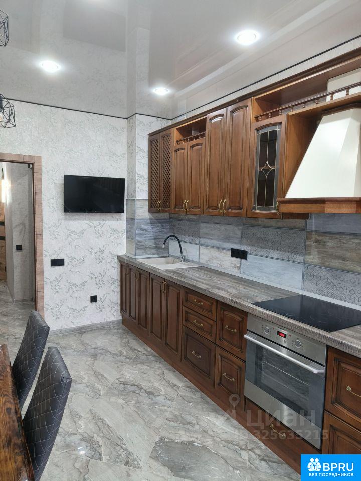 Сдается новая 1 комнатная квартира, ремонт только завершён. Площадь 58 кв.м. Большой зал, разделен на две зоны, зона отдыха и спальное место. Кондиционер. Кухня 12 кв.м. оборудована всем необходимым. выполнена из массива дуба. В квартире две гардеробных, совмещённый сан.узел, с душевой кабиной. Есть стиральная машина, водонагреватель и.т.д. Большая застеклённая лоджия. В квартире очень жарко, своя крышная котельная. Есть два телевизора. Сдается только на длительный срок от 11 месяцев, от хозяина.