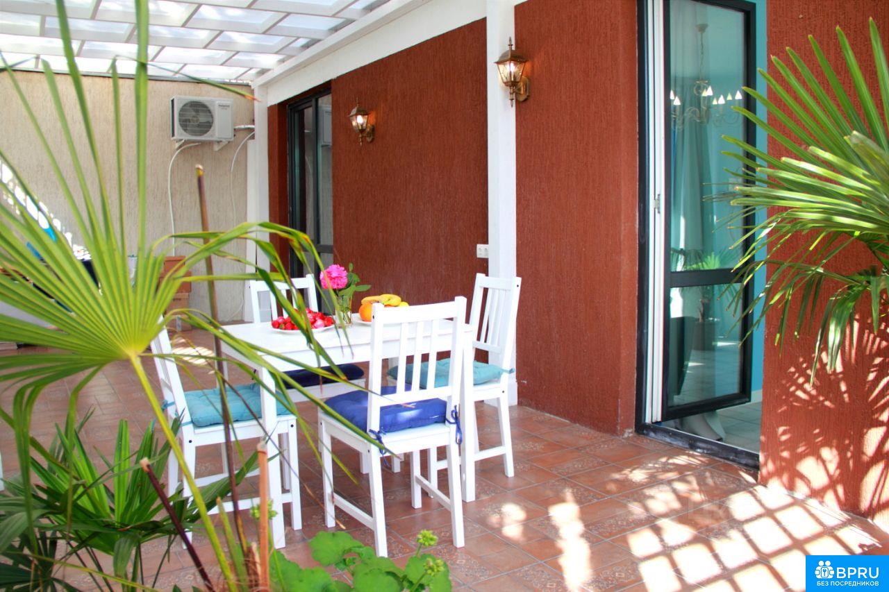 Свободна с 4 ноября по 1 июня. Ноябрь 55 тыс, остальные месяцы 60. Дом на закрытой территории с собственной парковкой и детской площадкой. Квартира с панорамными окнами. 90 кв. м. - 57 квартира плюс 33 личная терраса. 600 м до моря. Лучшие пляжи Сочи, чистое море. 4 оборудованных пляжа с шезлонгами, барами и ресторанами. Магазин КБ - 350 м, 5ка - 250 м, Магнит - 500 м. Для Вашего комфорта - полотенца, белье, халаты, бокалы, посуда. Я создала квартиру, погружающую в Средиземноморскую атмосферу. Лучшая бытовая техника. В изолированной спальне большая кровать 160*200 см. В гостиной диван 140*200 см. Из гостиной выход на личную террасу. Терраса радует простором, пальмами и цветами. Оборудована светильниками для вечернего отдыха и розетками. До Красной Поляны 60 мин на автомобиле. До морского порта 6 мин на автомобиле.