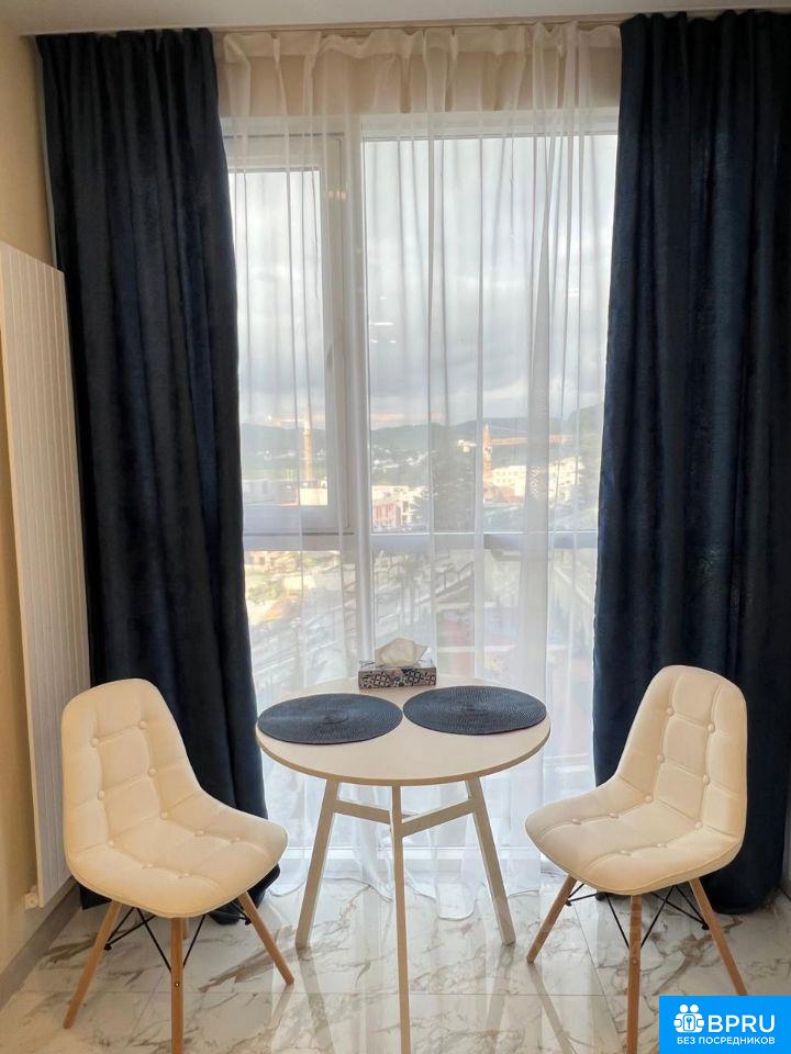 Предлагаем в аренду уютную студию в ЖК Сочи Парк. Квартира площадью 24 кв. м расположена на 5 этаже 19-этажного здания. Высокие потолки в 3 метра создают ощущение простора. Окна выходят во двор, поэтому в квартире всегда тихо и спокойно. Великолепный вид на горы В квартире выполнен евроремонт, что делает её не только красивой, но и комфортной для жизни. Пространство умело организовано: встроенная мебель в комнате и на кухне позволяет эффективно использовать каждый метр. Квартира оснащена всей необходимой техникой: кондиционер обеспечивает прохладу в жаркие дни, холодильник и стиральная машина облегчат быт, а телевизор подарит уютные вечера. Ванная комната оборудована современной душевой кабиной.Теплые полы создают приятное тепло. Дом в отличном состоянии, есть как пассажирский, так и грузовой лифты, поэтому можно легко и комфортно добраться до квартиры. Для автовладельцев предусмотрена наземная парковка. Инфраструктура района развита: в шаговой доступности находится торговый центр , детский сад, а также магазины, где можно приобрести всё необходимое. Близость общественного транспорта позволяет быстро добраться до любой точки города. Договор аренды заключается напрямую с собственником. Предусмотрен залог в размере месячной аренды. Квартира идеальна для одного человека или пары. Приглашаем вас на просмотр! Записывайтесь на удобное для вас время и почувствуйте себя дома в этой уютной студии.
