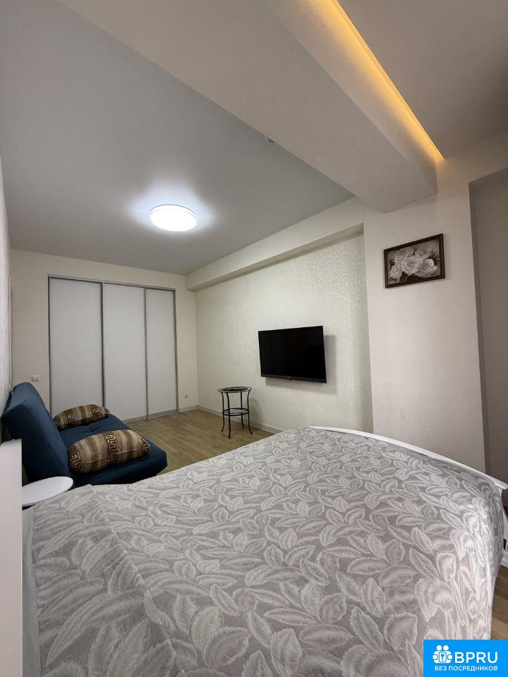 До Мая. Без кошек собак.Однокомнатная квартира с отдельной кухней и лоджией. Квартира полностью укомплектована всей необходимой мебелью (кровать + диван), техникой, посудой, постельными принадлежностями. Рядом автобусная остановка, магазины, кафе. До моря всего 10 минут пешком по ровной набережной.