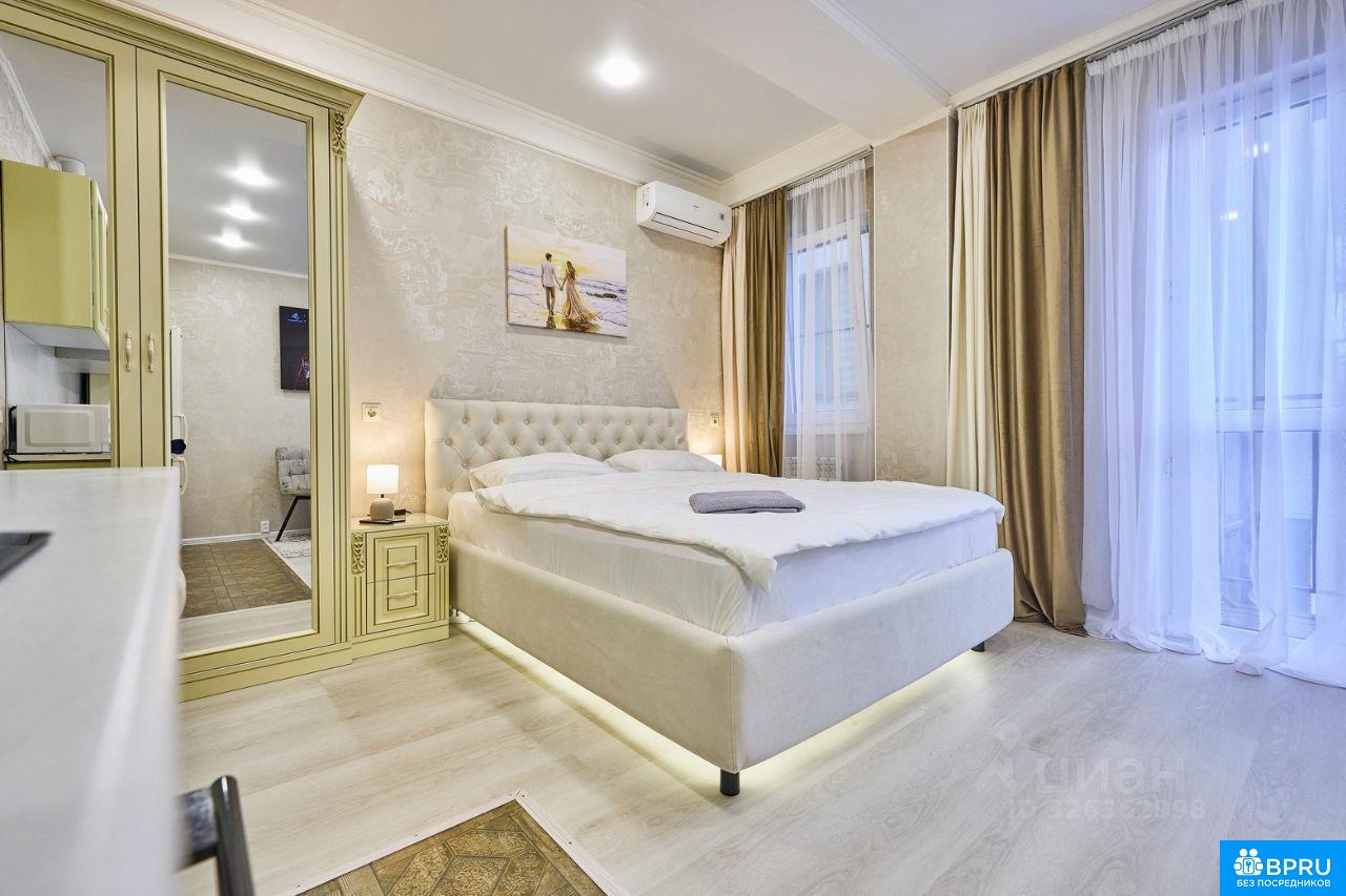 Сдам прекрасную студию в центре Сочи до 1 мая 2026 года. В студии выполнен новый ремонт, есть все для комфортного отдыха. Коммунальные платежи включены в месячную оплату аренды квартиры! Спальная зона: 2х спальная кровать Аsсоnа с удобным высоким матрасом , одеялом и подушками фирмы Аsсоnа, постельное бельё и индивидуальным освещением. Кухня оборудована кухонным гарнитуром, включающим: варочную панель, вытяжку, двухкамерный встроенный холодильник, микроволновую печь, чайник. Имеется вся необходимая посуда, столовые приборы. Ванная комната : душ, туалет, стиральная машина, раковина со шкафом и зеркалом, фен. В коридоре: зеркало с подсветкой, гардеробная с полками, ящиками и вешалками . В студии также есть кондиционер, сушилка для белья , утюг , пылесос, большой телевизор ( оплаченные приложения Кинопоиск, Иви, Окко), умная колонка с Алисой, интернет, Wi-Fi. Студия идеально подходит парам для романтического и комфортного отдыха . Гостям предоставляется: постельное белье, полотенца, жидкое мыло, средство для мытья посуды, туалетная бумага, ватные диски, ватные палочки, стиральный порошок, ложка для обуви. Для бронирования нужен паспорт Депозит 40000₽ (возвратный после осмотра студии при выезде) С животными не размещаем Забронируйте прямо сейчас или добавьте объявление в избранное, чтобы не потерять Инфраструктура: Центр города, до Курортного проспекта 10 минут пешком, до моря и Центральной набережной 17 минут пешком. До ближайших магазинов 5-7 минут. Выезд на дублер Курортного проспекта: удобно по нему добираться до Адлера, аэропорта, Красной поляны. Рядом автобусная остановка. Маршрут номер 13, 14. Магнит, Алкотека, WILDBERRIES, Ozon, Яндекс маркет, СДЭК и многое другое. В пешей доступности Зимний Театр, Фестивальный, Органный зал, Морской порт, Южный Молл, огромное количество парков, фонтанов, прогулочных зон, ресторанов, кафе, столовых.