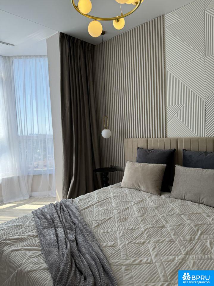 Сдается однокомнатная квартира с дизайнерским ремонтом Квартира оборудована всем необходимым для проживания! Двуспальная кровать, отдельная гардеробная, кузня, в су большая душевая! В комплексе бассейн, тренаженый зал, аптека, ресторан мазназин, детский и спортивные площадки