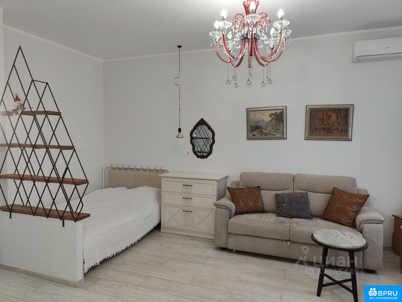Сдаётся стильная студия с дизайнерским ремонтом в современном доме 2013 года постройки. Квартира площадью 34 кв. м расположена на 9-м этаже 20-этажного здания. Высокие потолки 3 метра создают ощущение простора. Окна выходят во двор, что обеспечивает тишину и уединение. В квартире есть всё необходимое для комфортного проживания: кондиционер, холодильник, телевизор и стиральная машина. Пространство эргономично организовано — в кухонной зоне и жилой комнате установлена современная мебель. Санузел совмещён с душевой кабиной, а на балконе можно отдохнуть и насладиться видом. Дом находится в отличном состоянии. Для удобства жителей предусмотрены два пассажирских и один грузовой лифт, а также пандус для колясок и многуровневая парковка, поэтому можно не беспокоиться о месте для автомобиля. Район обладает развитой инфраструктурой: рядом находятся школы, детские сады, клиники и магазины. Всё необходимое для комфортной жизни в шаговой доступности. Хорошая транспортная доступность позволяет легко добраться до любой точки города. Аренда осуществляется напрямую от собственника, без комиссии. Предусмотрен залог, обсуждаются условия долгосрочной аренды. Квартира рассчитана на проживание одного человека или пары. Приглашаем вас на просмотр этой уютной студии. Записывайтесь и приезжайте, чтобы оценить все её преимущества лично!