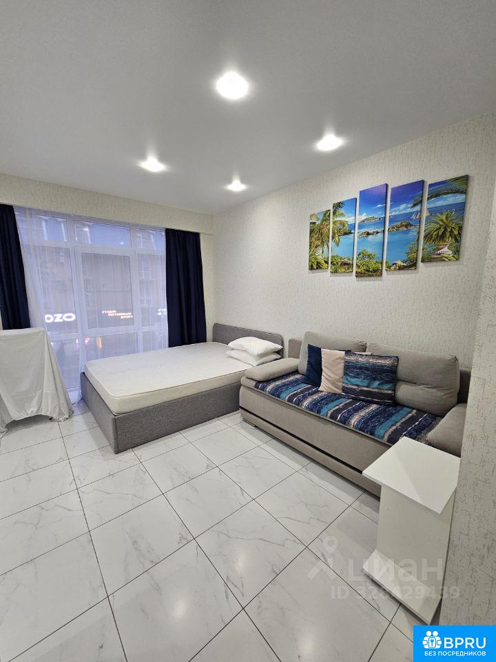 Сдается уютная студия в современном доме 2017 года постройки. Квартира общей площадью 27.5 кв. м расположена на 2 этаже 7-этажного монолитного здания. Высота потолков 2.8 метра создает дополнительное ощущение простора. Окна выходят во двор. В квартире сделан современный евроремонт. Пространство грамотно зонировано: есть все необходимое для комфортного проживания. В комнате и на кухне — современная мебель. двуспальная кровать, раздвижной диван. Большая гардеробная для хранения вещей. Квартира полностью укомплектована техникой: кондиционер, холодильник, телевизор, стиральная машина, микроволновая печь и т.д. Санузел совмещенный, оборудован душевой кабиной. Вода горячая - от водонагревателя 30л. Интернет wi-fi. Дом оснащен пассажирским лифтом и пандусом, что делает его удобным для всех категорий жильцов. На территории дома предусмотрена наземная парковка, доступ на территорию ограничен шлагбаумом и калиткой. В шаговой доступности находятся детские площадки, набережные для прогулок и магазины, что делает квартиру особенно привлекательной для семей с детьми, а так же для занятия спортом. Через дорогу вход в парк Южные культуры. Отличная транспортная доступность: остановки общественного транспорта находятся в нескольких минутах ходьбы. Условия аренды: договор напрямую с собственником, без комиссии. При заселении оплата первого! и последнего! месяца и + залог в размере месячной оплаты. БЕЗ ПОВЫШЕНИЯ СТОИМОСТИ НА ЛЕТО для арендаторов на долгий срок!