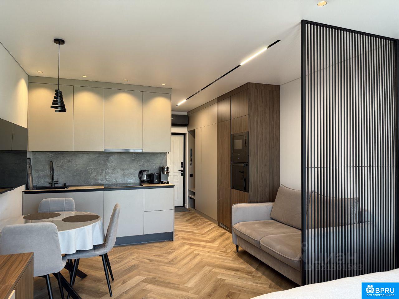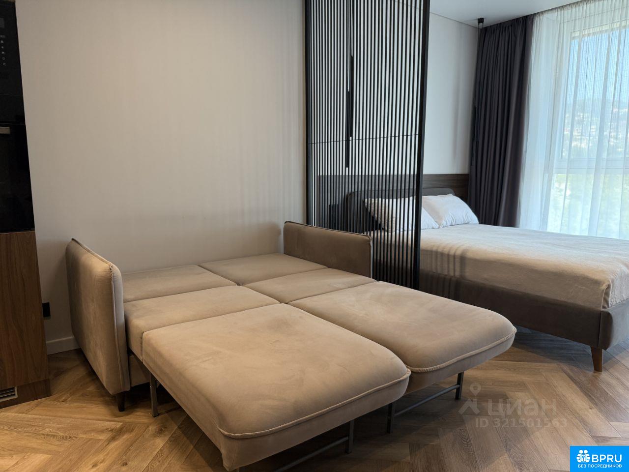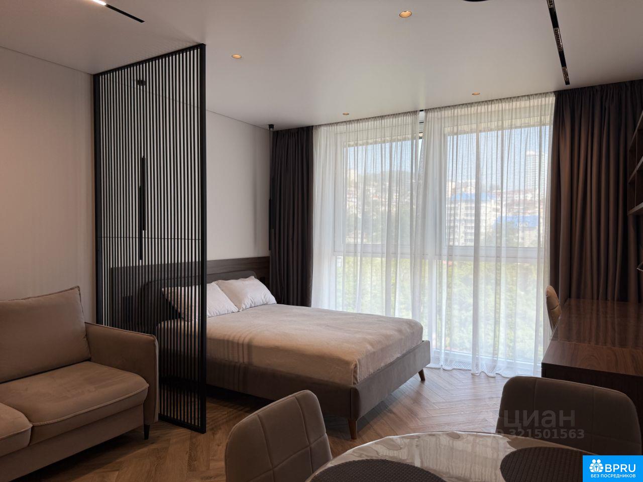 Современная светлая студия с панорамным остеклением и видом на море в жилом комплексе бизнес-класса Новая Альпика. Свободна с 30 апреля. ЖК расположенн в экологически чистом микрорайоне Яна Фабрициуса, рядом с лесопарковой зоной национального парка и санаторием Золотой колос. До ближайшего муниципального пляжа — всего 15 минут пешком. В квартире предусмотрено всё для комфортного проживания: - Двуспальная кровать с подъемным механизмом и анатомическим матрасом Аскона Grether & Wells Heaven Prestige (140x200 см); - Раскладной диван Pushe со спальным местом аналогичного размера; - Шторы блэкаут для идеального затемнения и спокойного сна; - Инверторный кондиционер; - Высокоскоростной Wi-Fi; - Поворотный телевизор Smart TV 50, удобный для просмотра из любой точки студии; - Письменный стол с розетками — полноценное рабочее место; - Утюг, отпариватель, пылесос, гладильная доска, напольная сушилка, москитные сетки. Кухонная зона оснащена всей необходимой премиальной техникой и посудой: - Духовой шкаф, микроволновая печь, стеклокерамическая варочная панель и вытяжка; - Встроенный холодильник No Frost; - Посудомоечная машина; - Тостер, умный чайник с регулировкой температуры; - Кофемашина De Longhi с капучинатором. - Соковыживалка для цитрусовых - Фильтр для воды В санузле установлена современная душевая система с тропическим душем и термостатом. Кроме того, предусмотрены: - Стиральная машина с функцией пара; - Полотенцесушитель; - Фен. Во всей квартире — теплый пол и износостойкий кварцвиниловый ламинат, обеспечивающие комфортную температуру в любое время года. Территория ЖК оснащена по всему периметру видеонаблюдением. Имеется консьерж, шлагбаум и гостевая парковка. Развитая инфраструктура: Автобусная остановка — 410 м (5 мин пешком) Продуктовые магазины: Магнит — 600 м, Пятёрочка — 700 м (6 мин пешком) Пункты выдачи OZON и Wildberries — 500 м, постамат Яндекс Маркет — 400 м (5 мин пешком) Аптека — 400 м (4 мин пешком) Изысканный ресторан ADRIANA на территории премиального отеля LUCIANO HOTEL & SPA SOCHI 5* — 500 м (5 мин пешком) Сад-музей Дерево дружбы — 600 м (6 мин пешком)