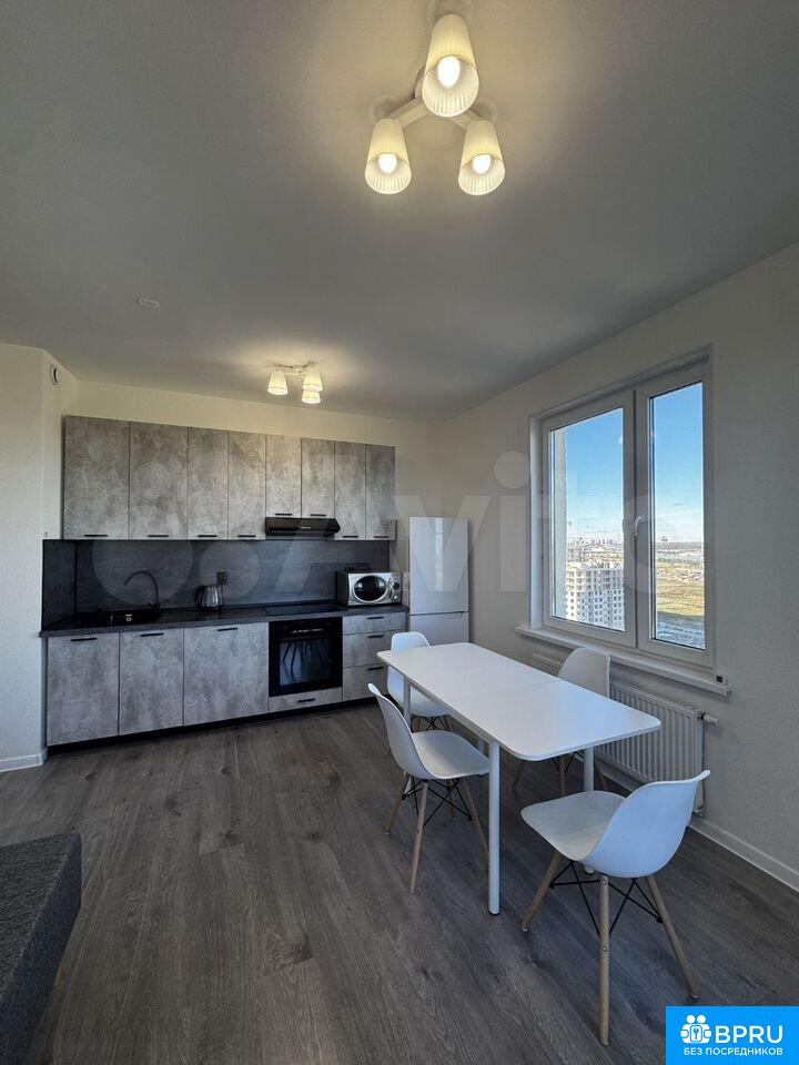 Сдaется в apeнду уютнaя евротрeшка в cовремeннoм доме, pаcпoлoжeннoм в деревнe Hoвoсaрaтовка, Всеволожcкий pайон. Общая площaдь квapтиpы cocтавляет 50,8 кв. м (без балкoна), жилaя площaдь — 21,7 кв. м, a куxня — 15,4 кв. м. Квapтирa нaхoдитcя на 17-м этaже 22-этaжного домa, постpoеннoгo в 2024 году, с панорамными окнами, выходящими на Невский лесопарк и Неву. Высота потолков — 2,76 метра. Квартира очень теплая и светлая.В квартире никто не жил, новый ремонт.Кухня полностью меблирована, есть все необходимое:- холодильник;- посудомоечная машина;- духовой шкаф;- варочная панель;- микроволновая печь;- кухонный гарнитур;- стол раскладной;- 4 стула;- посуда;- раскладной диван.В комнатах также имеется мебель:- Кровать двуспальная 160*200 с выдвижными ящиками;- матрас;- 2 прикроватные тумбочки;- большой комод;- шкаф;- прихожая.Просторная ванная комната:- отдельный умывальник с ящиками;- шкафчик;- стиральная машина.Туалет:- шкафчик;- умывальник.Также имеется балкон с освещением площадью 3,3 кв.м.Парадная оснащена двумя пассажирскими и двумя грузовыми лифтами, колясочной. Сквозной проход на территорию внутреннего двора. Дом новый, поэтому все коммуникации и инфраструктура находятся в идеальном состоянии.В пешей доступности находятся все необходимые объекты инфраструктуры: детский сад, детские площадки, футбольное поле, магазины, пункты выдачи, кафе, пекарни. Рядом с домом конечная автобуса до метро Пролетарская, в дороге минут 15-20. До станции метро «Пролетарская» можно добраться на автомобиле за 11 минут, до «Ломоносовской» - за 15.Аренда квартиры осуществляется без посредников. Аренда по договору только на длительный срок. Вносится залог в размере месячной платы, комиссия агенту отсутствует. Подходящий вариант для проживания семьи, можно с небольшими воспитанными животными.Есть небольшой торг.