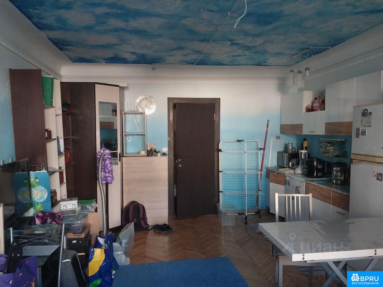 Просторная комната 24м² с красивым ремонтом и потолком разрисованным под облака. Мебель остаётся в комнате. Есть 2 спальных места, двуспальная кровать и раскладушка под пуфик. Окна из комнаты во двор. В квартире 4 комнаты(живет 1 семья в 3 комнатах(2 человека)). Санузел раздельный. Лифт небольшой с парадной. Есть вторая лестница с кухни в открытый двор дома, там парковка и мусорные баки. КУ 3000-4000 летом, 6000-6500 зимой.