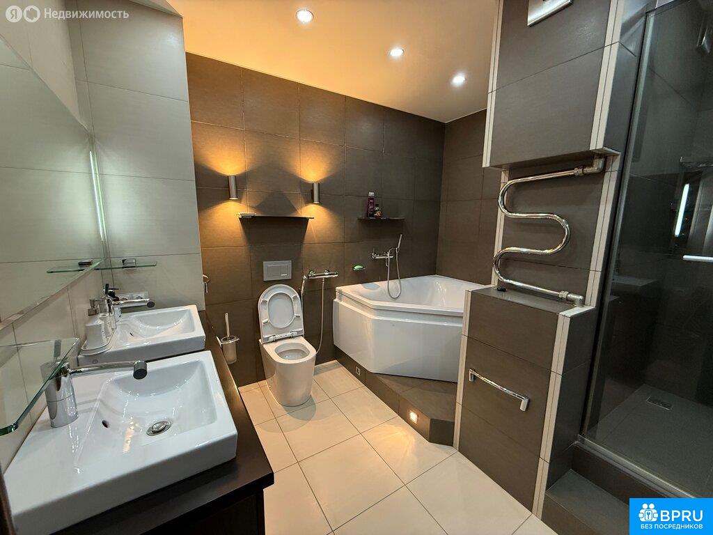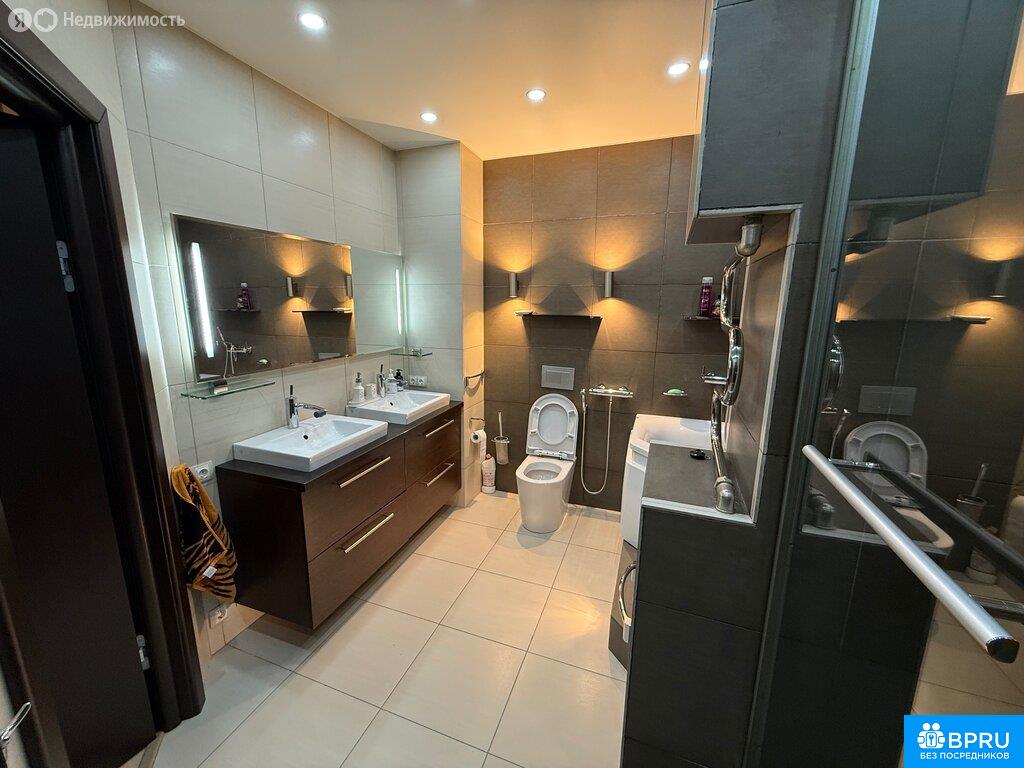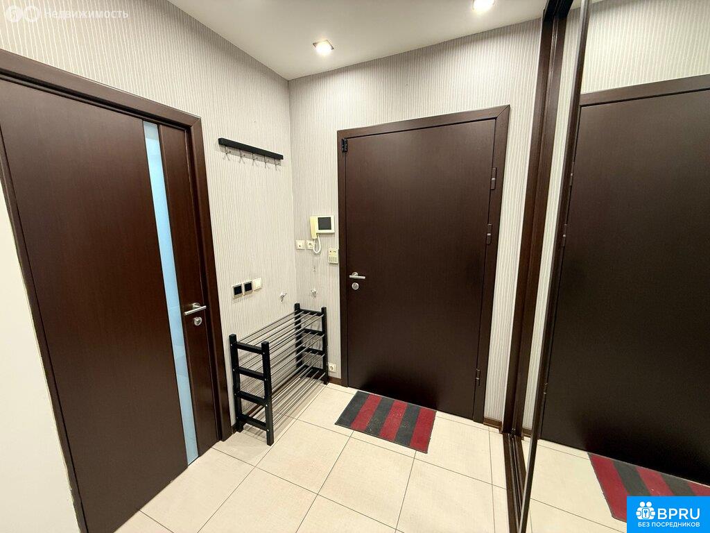 Без комиссии Большая евро двушка в аренду в ЖК Сергей Есенин на 20-ом этаже. Квартира изначально трёхкомнатная, из неё организована большая кухня-гостиная, спальная и детская комнаты. Квартира разделена на две зоны: гостевую и частную, разделяемую коридором. В прихожей есть место для верхней одежды, большой шкаф-купе и сразу при входе гостевой туалет. Кухня-гостиная оборудована всем необходимым для комфортной жизни: большой холодильник, отдельный морозильник, винный шкаф, микроволновая печь с функцией духовки, пароварка с функцией духовки, посудомоечная машина, индукционная плита, кондиционер, телевизор 65", кожаный диван с раскладушкой. Вместительная зона хранения. Балкон. Смеситель для раковины сдвоенный с функцией подачи фильтрованной воды. Коридор отделяет гостиную зону от частной. здесь есть вместительная кладовая, длинный шкаф-купе для дополнительного хранения и переходы в спальную, детскую и ванные комнаты. Спальная комната оборудована большой двуспальной кроватью шириной 180 см прикраватными тумбами, шкафом-купе. Здесь есть сейф и свой балкон. Детская комната рассчитана на проживание двух малышей Ванная комната оснащена душевой кабиной, большой ванной, стиральной машиной с функцией сушки, большим бойлером. В душевой кабине предусмотрен термостат и тропический душ. Туалет оснащён гигиеническом душем. Две раковины позволяют быстро собраться утром всей семье. На всех стояках ХВС/ГВС установлены фильтры на воду, в санузлах, на кухне и балконе - тёплые полы. Возможно переосанщение детской комнаты под нужды жильцов другого возраста. В подземном паркинге есть парковочное место, которое возможно арендовать за отдельную плату (вход в паркинг - напротив подъезда, очень удобно).