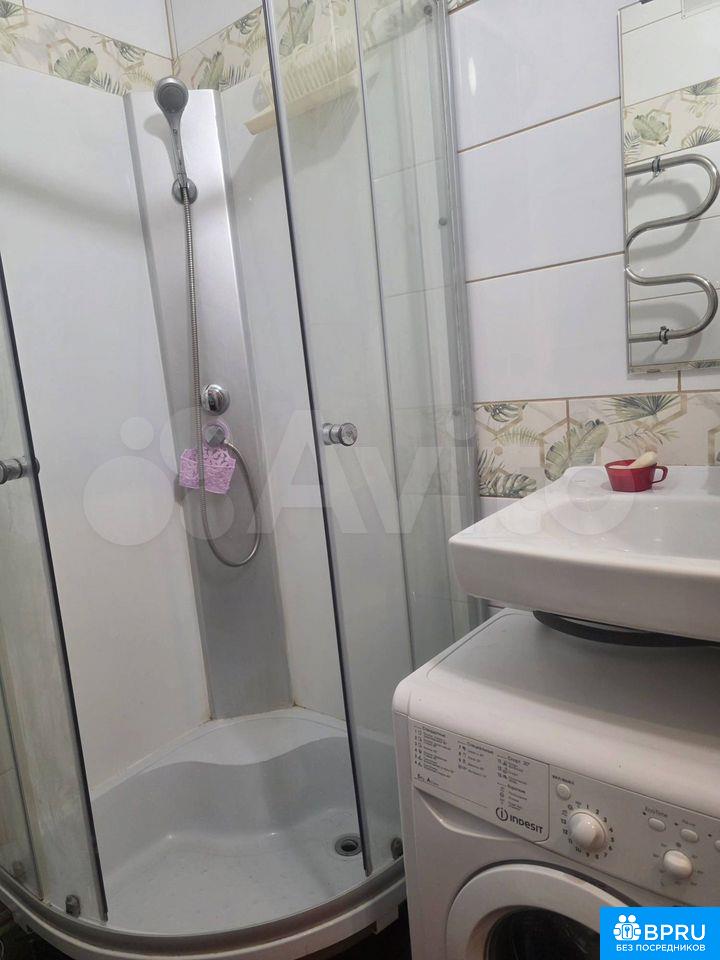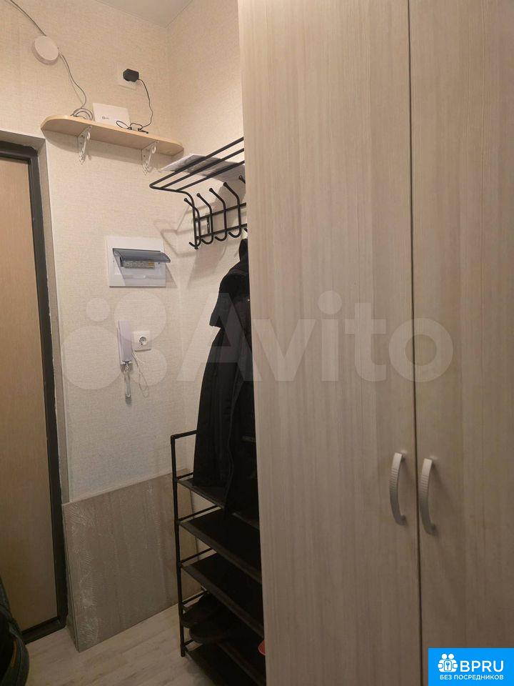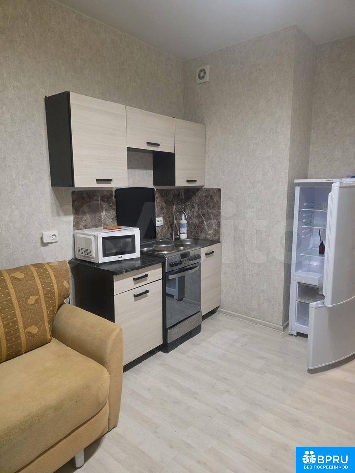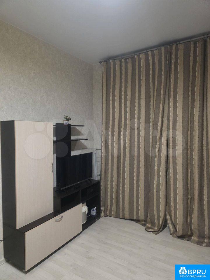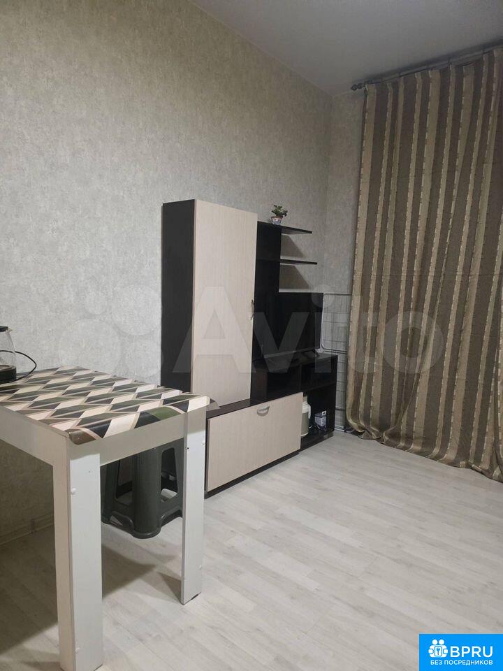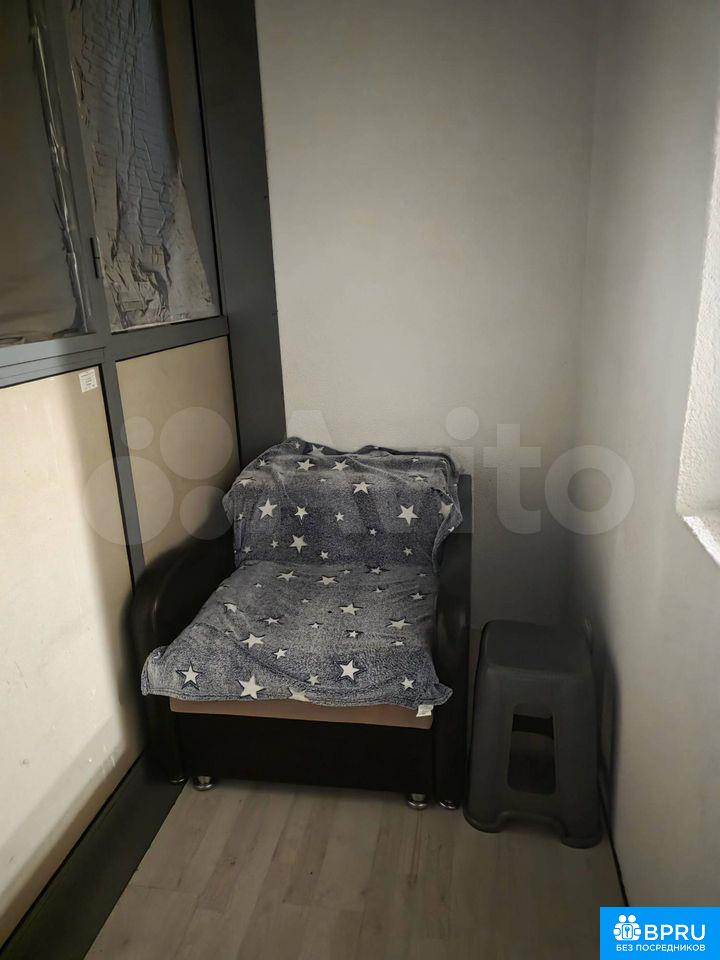 Студия на 16 этаже сдается на длительный срок от собственника. Есть все необходимое для проживания: стиральная машинка, холодильник, телевизор, микроволновка, большой двух-спальный диван. На балконе удобное кресло и шкаф.