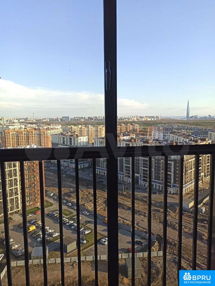 Студия 25 м2 без мебели. Вид из окна на залив и ЛахтаЦентр. Возможно приобретение самого необходимого в счёт аренды (мини кухня, холодильник, стиралка)