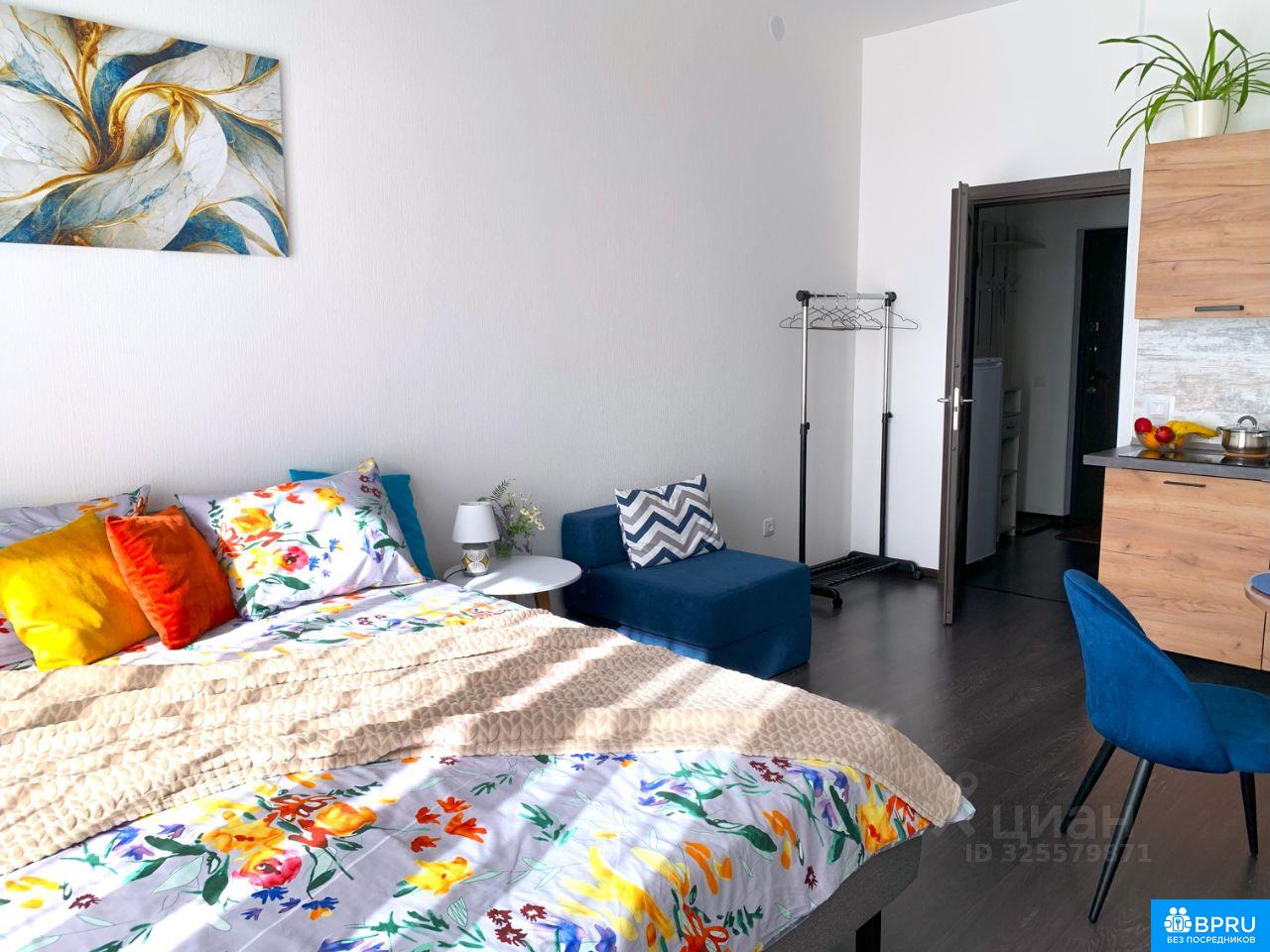 Сдается квартира-студия в ЖК "Резиденции" в Дворцовой части Санкт-Петербурга. Малоэтажный комплекс "Резиденции" на юго-западе города расположен вблизи 3-х парков: Сосновая поляна, Новознаменка, парк Солнечный город. До ближайшего м. Проспект Ветеранов 30 минут на транспорте, самый удобный маршрут на электричке прямо до центра (Балтийский вокзал), пешком до станции 10 минут. Дом удачно расположен вдали от шоссе, 2023 г постройки, малоэтажный, есть грузовой лифт. Квартира-студия находится на 4-м последнем этаже, высокие потолки 3 м, просторная застекленная лоджия, имеется всё для комфортного проживания. В распоряжении жильцов: - 2-сп. кровать с хорошим матрасом 160х200, -раскладное мини-кресло, -телевизор, Wi-fi, -холодильник, - эл. чайник, - эл. плита, микроволновка, - посуда для приема и приготовления пищи, столовые приборы, бокалы, - стиральная машина, фен, - комплект постельного белья, полотенца. Прекрасный внутренний двор жилого комплекса с ландшафтным озеленением станет любимым местом вечернего отдыха. Жилой комплекс является закрытой территорией для посторонних, видеонаблюдение, охрана 24/7. Рядом всевозможные сетевые продуктовые магазины, КБ, хоз. товары, аптеки, йога-центр, студия тайского массажа, кафе, также в 10 мин. пешком расположены два больших торговых центра, фитнес-центр, недалеко Гипер Лента и Лемана Про. Остановка общественного транспорта в 5 мин. пешком, а также рядом самый удобный и быстрый маршрут до центра СПБ - электричка в пешей доступности. Сдается с 10 января, 27 000 +КУ, залог 20 000 можно разделить на 2 платежа. Строго без животных.