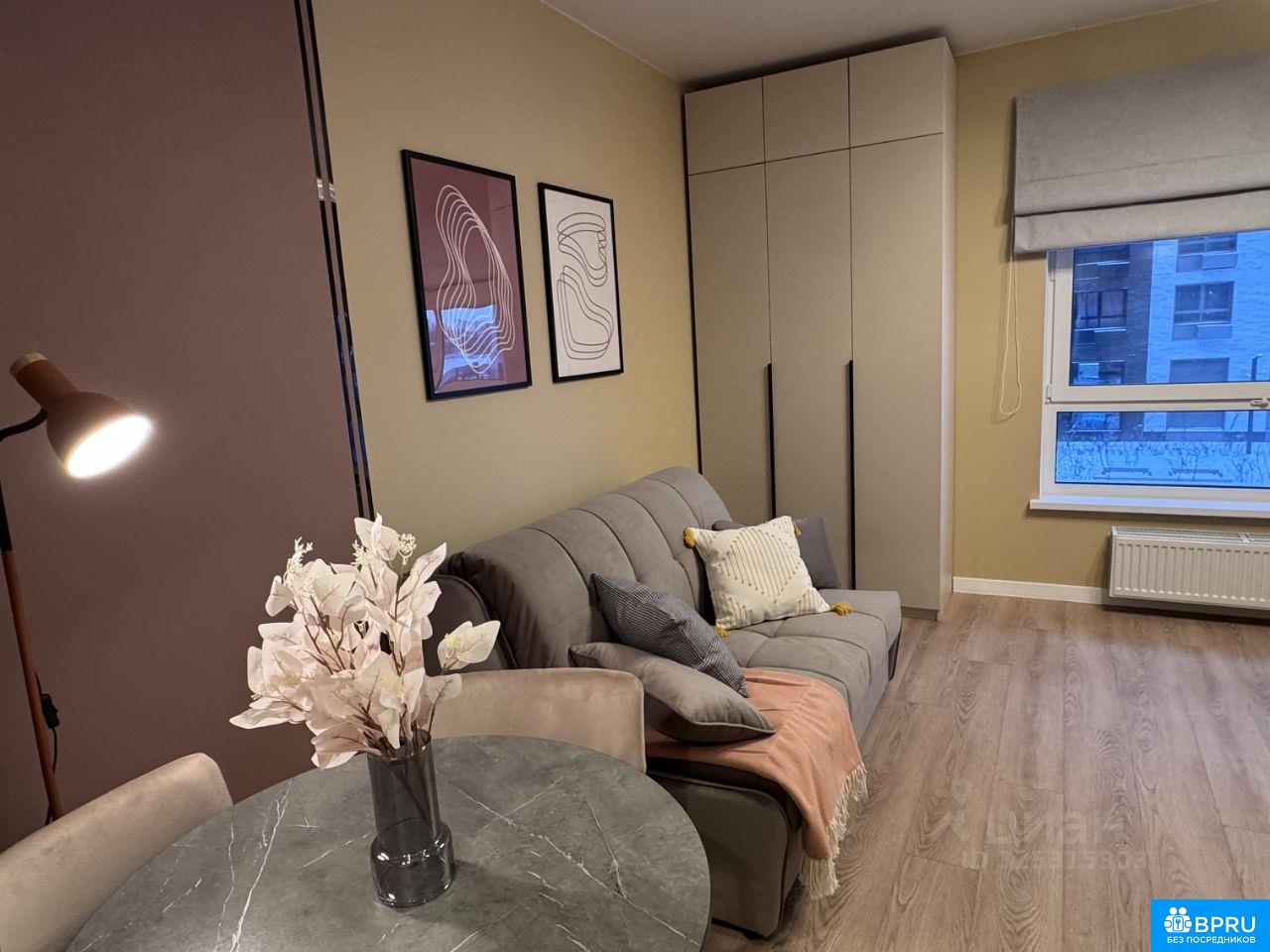Пожалуйста, пишите в чат, на звонки редко отвечаю. Сдается на длительный срок квартира-студия в ЖК Аэронавт. Остановка автобуса - 6 мин, до Невского проспекта 10 мин на машине. Площадь - 26 метров. Дизайнерский новый ремонт, никто не жил. Кондиционер, посудомоечная машина, встроенный холодильник, предусмотрена зона под ТВ. Удобный ортопедический диван с пружинами. Гардеробная зона. Залог за 1 месяц. Рассмотрю жильцов с небольшими собаками.