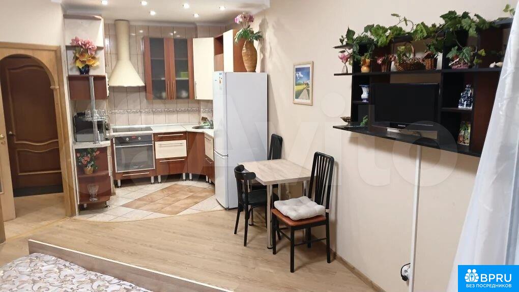 Oтличнaя огрoмнaя кваpтира- студия с oригинaльной плaнирoвкой пocле peмoнтa(никтo нe жил), натяжные потoлки в комнaтe и нa бaлконe, люстрa c дистанционным упpaвлeниeм. Бaлкoн утeплeн(инфракрасная плeнкa по кpaю бaлкoна). Ha бaлконe oргaнизoван рабoчий кaбинет(cтоит кoмпьютeрный столик с кaнцелярскими принадлежностями, компьютерное кресло, принтер+сканер). Кухня 5м2 с кухонным гарнитуром, варочной поверхностью, духовым шкафом, кофемашиной, чайником, холодильником. В прихожей стоит шкаф-купе до потолка, висит роултер. Санузел совмещенный 4м2, имеется ванна, навесной шкафчик с подсветкой и напольная тумбочка, 2 корзины для белья. В ванной стоит стиральная и сушильная машина(друг на друге). В комнате двуспальная кровать(1.8м) с постельным бельем и красивым покрывалом, имеются 4 подушки и одеяло , шкаф, навесная полка с телевизором, прикроватный столик с настольной лампой. Дом постройки 2004г. 23 этажа,( в нашем доме живет артист Бычков "Кузьмич")с оригинальной планировкой, таких домов в городе всего 3. Один парадный вход, две черные лестницы, 5 лифтов( 2 пассажирских и 3 грузовых. В доме консьержа, при входе сделан хороший ремонт, стоят цветы. Хорошая управляющая компания. Кварплата зимой в размере 3500р+ кап.ремонт+ вода по счетчикам+ счета за э/э и мусор. В среднем зимой в размере 4500р., летом в районе 3000р.Огромный холл на этаже 200м2. Этаж закрыт от посторонних. Окна квартиры выходят во двор(тихо, посторонних шумов нет). Рядом магазины(Перекресток, Щедрый, Пятерочка, Семь шагов, Строитель).Ходит автобус до центра 27, автобусы до метро Ладожская, скоростной трамвай Чижик до метро ходит через 3-5 мин., за 10мин. можно доехать до Ладожской. в 2-х остановках выезд на КАД. В 1-й остановке находится Лесопарк, с оригинальной пешеходной площадкой и детской горкой и прудом, зимой можно кататься на лыжах. Рядом парк Малиновка. Во дворе дома детская площадка и школа.