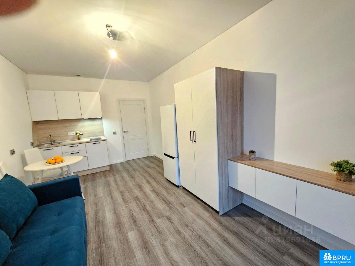 В престижном Московском районе сдаётся новая полностью укомплектованная большая студия, на комфортном четвёртом этаже. В доме комфорт-класса есть лифт, закрытая придомовая территория, видеонаблюдение. Рядом с домом находится детский сад и школа бассейном. Удобная транспортная доступность до станции метро Московская 15 минут на машине или 20 минут на автобусе. Просторная квартира-студия 24,5 кв.м, имеет удобную планировку, широкую светлую комнату 18.3 кв.м, со встроенной кухней и бытовой техникой, удобный коридор 3.7 кв.м , большую остеклённую лоджию и совмещённый санузел. Квартира новая, чистая. Выполнен качественный ремонт, установлен тёплый пол в ванной комнате. Есть всё необходимое для комфортного проживания: холодильник, варочная панель, стиральная машина, ортопедический диван-кровать, шкафы, комод - всё абсолютно новое. Я собственник, пишите, отвечу на все Ваши вопросы. Услуги риелторов не интересуют.