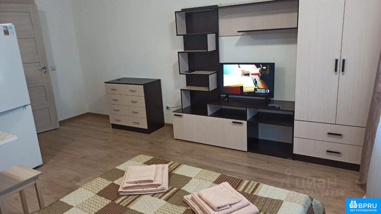Сдаётся просторная студия на длительный срок. В квартире выполнен косметический ремонт. Просторная лоджия добавляет дополнительное пространство для отдыха. Курение запрещено, можно проживать с детьми, но без животных. Внутри есть всё необходимое для комфортного проживания: телевизор, холодильник, духовой шкаф и электрическая печка, стиральная машина. Из мебели — удобные диван (складывается) и шкаф. Дом монолитный, построен в 2018 году. В подъезде есть пассажирский и грузовой лифты. Для автомобилей предусмотрена подземная парковка. Во дворе оборудована спортивная площадка, двор без машин.