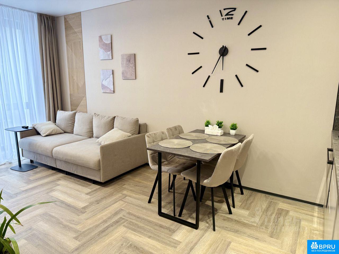 Сдаётся современная квартира на длительный срок. Дом новый, построен в 2025 году. Просторная кухня с дизайнерским ремонтом, светлая и уютная спальня. В квартире есть всё необходимое для комфортного проживания: - отдельная гардеробная зона - душевая система с термостатом - сушильная и стиральная машина - кондиционер - кухня с встраиваемой техникой (в тч посудомоечная машина и микроволновая печь) - тв зона и wi-fi (300 мб/с) - посуда и столовые приборы - панорамные окна Дом оснащён пассажирским и грузовым лифтами, мусоропроводом. Парковка подземная и открытая вокруг двора. Во дворе закрытая территория с детской и спортивной площадкой. Рядом с домом скоро откроется школа и детский сад.