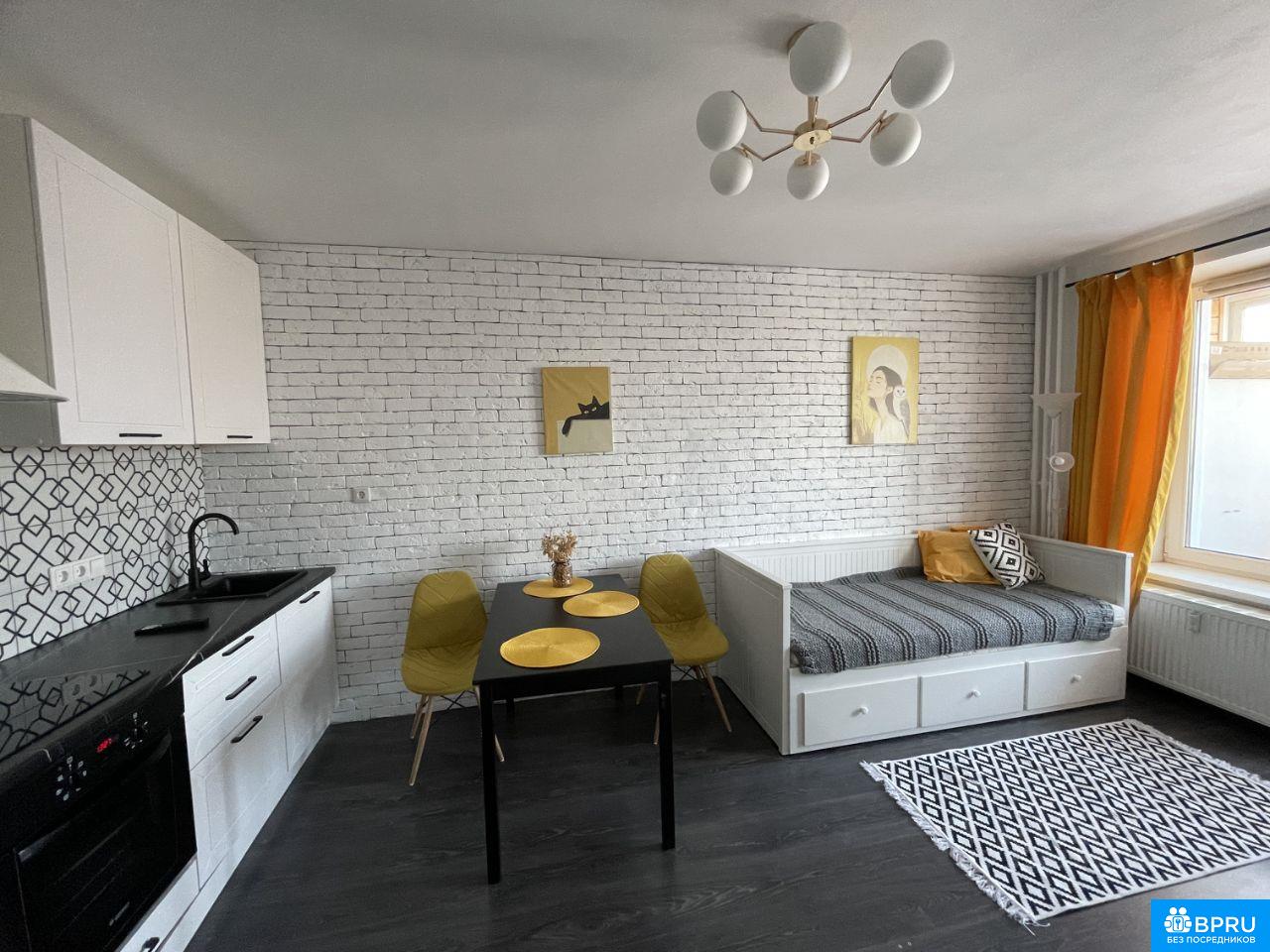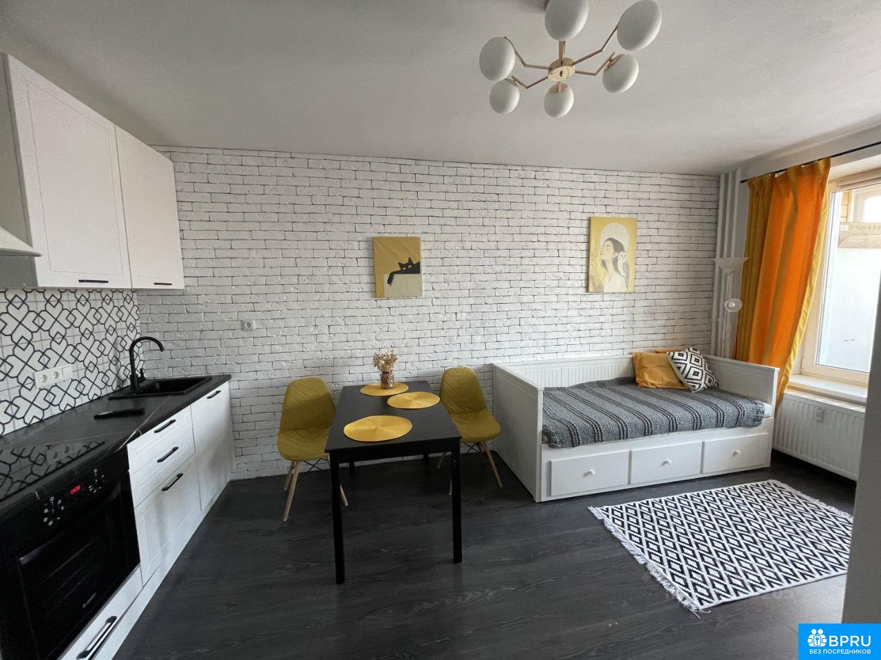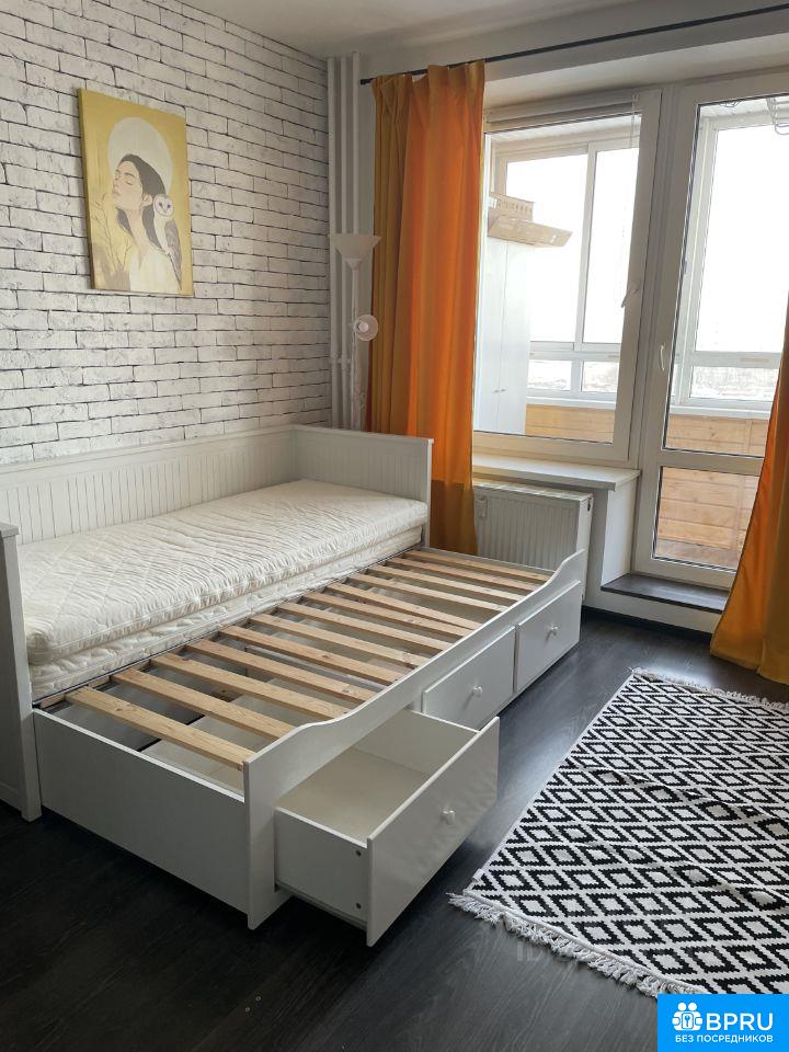 Сдаётся уютная студия с отличным видом на город. Сдается впервые, сделан косметический ремонт, новая кухня и бытовая техника. Закрытая территория, видеонаблюдение, парковка во дворе, также рядом паркинг (при желании можно снять за 5-7 тыс./месяц), в доме есть магазины - Магнит, Магнит Косметик, КБ, АМ, 3 кафе, 2 салона красоты, спортивные площадки во дворе. Рядом с домом 2 бассейна. Много автобусов с удобными маршрутами от дома. Большая обустроенная застекленная лоджия. Спальное место: кровать-кушетка Икеа с тремя вместительными ящиками, которая при необходимости раскладывается в полноценную двуспальную кровать, матрасы Аскона. Смарт-ТВ. Много мест для хранения, в т.ч. на лоджии. В квартире есть все для комфортного проживания (посуда, чайник, микроволновка и пр.) Квартира сдается девушке, по договору на срок до конца августа 2026 года с возможностью дальнейшего продления. Курение запрещено. Без домашних животных. Арендная плата - 37000 рублей + низкие КУ (примерно 1500-2500 р., везде стоят счетчики, в т.ч. на тепло). Залог 37000 рублей. Сдается без комиссий и посредников.