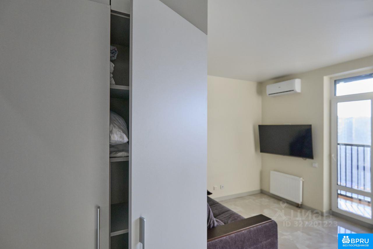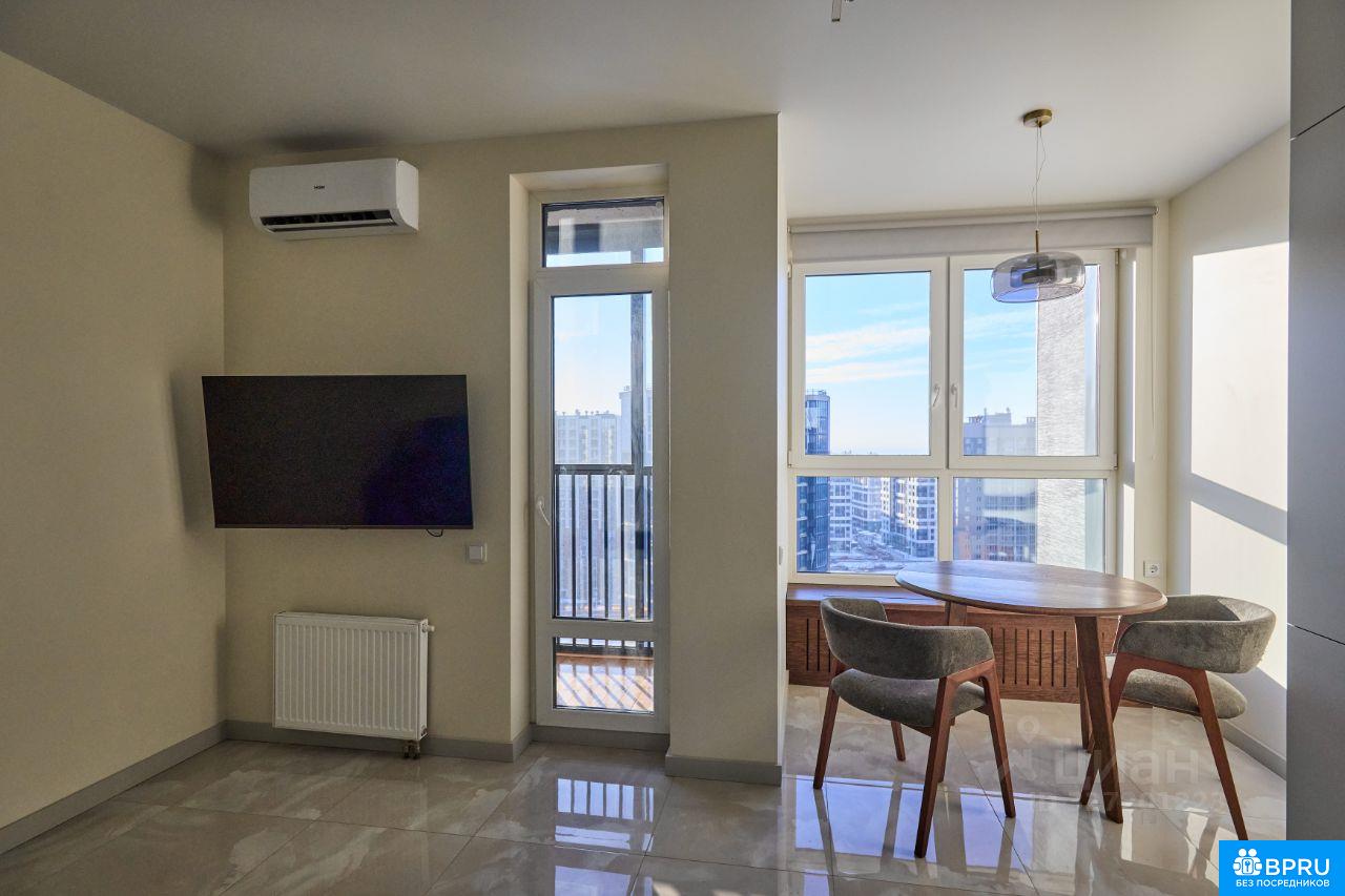 Сдается студия на длительный срок в монолитно-кирпичном доме 2023 года постройки. Квартира расположена на 16 этаже из 18, что обеспечивает прекрасный вид из окон. В квартире выполнен дорогой и ремонт, создающий уютную атмосферу. Внутри вас ждет современный интерьер с качественной отделкой, пол и стены ванной из керамо-гранита. Из мебели — удобный раскладной диван с нишами в локтях для белья, по мимо большой кухни имееться удобные шкафы как в корридоре так и в комнате. Вся бытовая техника от европейских брендов (бош, электролюкс, aeg), духовой-шкаф с функцией свч печи, стиральная машина с сушкой. Кухня высокого качества с доводчиками и большим функционалом. Поставлены фильры очистки воды общие и для питья. по всей площади квартиры сделан трех-зонный теплый пол електролюкс. Балкон предоставляет дополнительное пространство для отдыха. Совмещенный санузел оснащен современной испанской сантехникой. так-же имеется полноценная чугунная ванна. Во дворе есть спортивная площадка и открытая парковка. В доме имеются пассажирский и грузовой лифты.