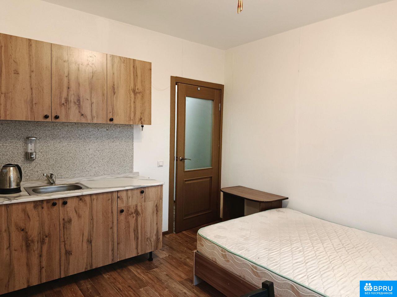 Комната студия с кухней и своим личным балконом В комнате двуспальная кровать, комод, шкаф, прикроватная тумба, стул, кухня, раковина, микроволновка, чайник, плитка Ванная, туалет в квартире. Всего в квартире 4 комнаты, еще 3 соседа, 2м/ч и 1 девушка Общая кухня тоже есть, если вдруг захочется У нас порядок, чисто, правила и график уборки соблюдаем Современный дом, современный район. Рядом сетевые магазины, кафе 24 часа Классный вид со своего личного балкона Предпочтительно для 1 спокойной девушки, но парня или пару тоже рассмотрю