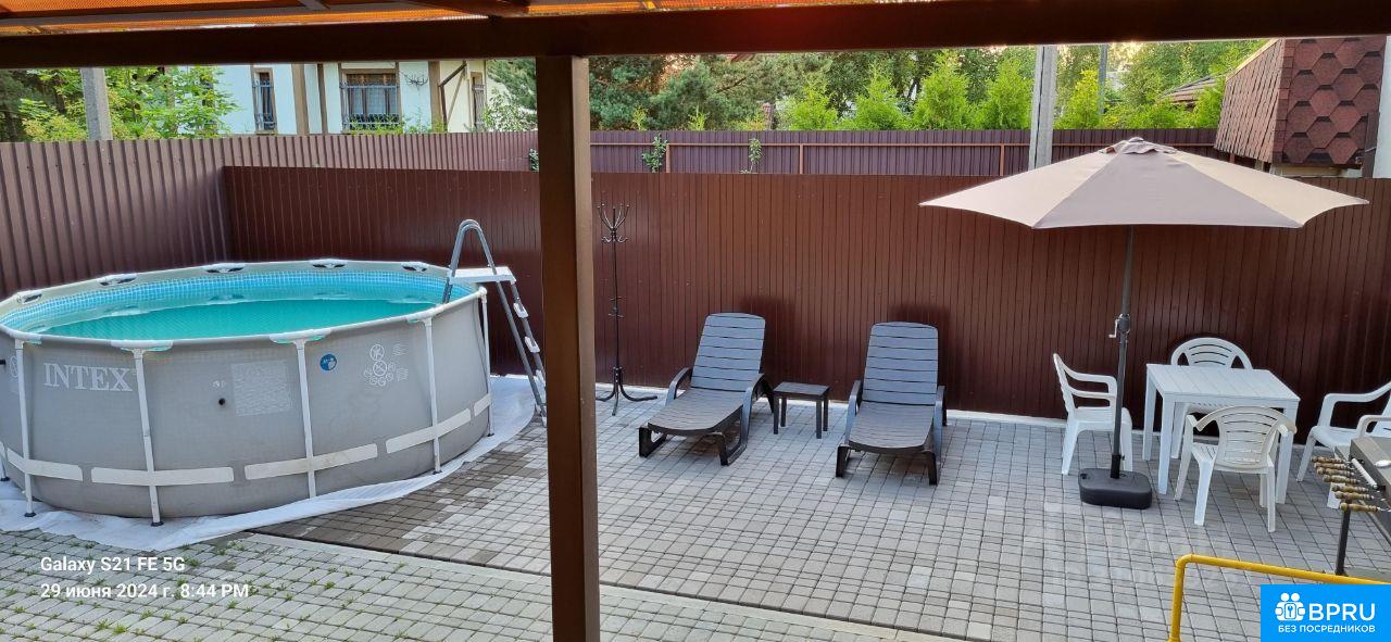 Сдам дом площадью 115 м2 На территории -Парковка на четыре автомобиля -Мангальная зона -Стол с креслами, качели, каркасный бассейн, шезлонги для отдыха на свежем воздухе. Навес 60 кв. м. Дом укомплектован новой мебелью, техникой и всем необходимым. Тёплые полы по всему дому. Просторные комнаты, со всеми удобствами. Кухня со всем необходимым-микроволновка, кофемашина, индукционная панель. Холодильник, посудомойка, стиральная машина и разнообразная посуда. Всё новое.