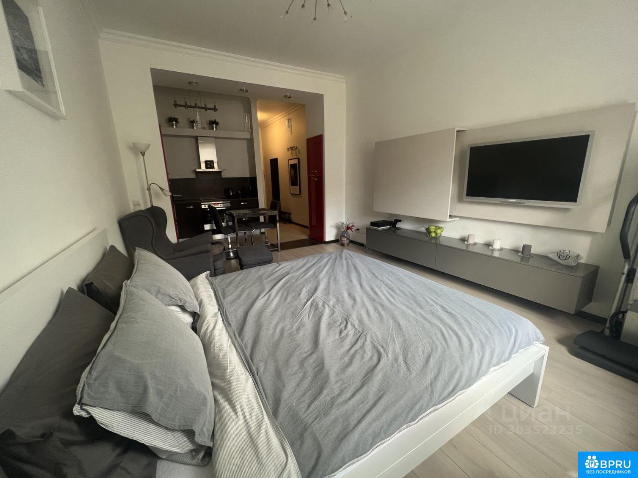 Отличная большая студия 35 кв.м. в клубном доме ЖК "ТАЙМС" от собственника.. В квартире есть все для комфортного проживания. Дизайнерский ремонт, продуманная система хранения, высокие потолки 3,20 м. Вся сантехника Jacob Delafon. Холодильник Liebherr, плита AEG, духовой шкаф и посудомоечная машина bosch. Есть охраняемая парковка на закрытой территории двора. Без детей, без животных. АГЕНТОВ ПРОШУ НЕ БЕСПОКОИТЬ!!!