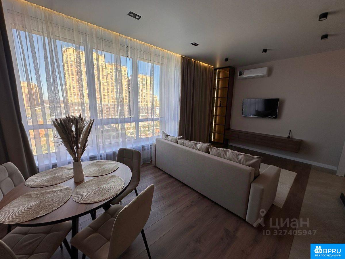 Сдается евро-трехкомнатная квартира с видовыми характеристиками. Находится в одном из самых прекрасных и живописных районов нашего города, с потрясающим видом на сквер Героев России. Просторная кухня-гостинная, две спальные комнаты, раздельный санузел. В прихожей размещена вместительная гардеробная комната. При необходимости возможна установка дополнительной мебели во второй спальной комнате. Квартира оборудована двумя сплит системами, встроенноймебелью, есть посудомоечная и стиральная машины, холодильник, телевизор, большая кровать. В прихожей, санузлах и кухне, а также лодии выполнены полы с подогревом. Рядом школы, детские сады, магазины, кафе и рестораны, диагностический центр, спортивный комплекс EVO GYM. Закрытый от машин двор с оборудованными зонами отдыха. В квартире сделан дорогой, качественный ремонт. Первая линия от сквера с прекрасным видом. Сдается на длительный срок добросовестным порядочным людям. Предоплата за последний месяц. Строго без животных. Возможно с детьми старше 8 лет. Также в стоимость входит кладовая на этаже 4.3 кв.м. (удобно для хранения крупногабаритных вещей, велосипедов и т.п.). Стоимость аренды 65 000 р. + 65 000 р. залог. Коммунальные платежи оплачиваются отдельно по платежным квитанциям.