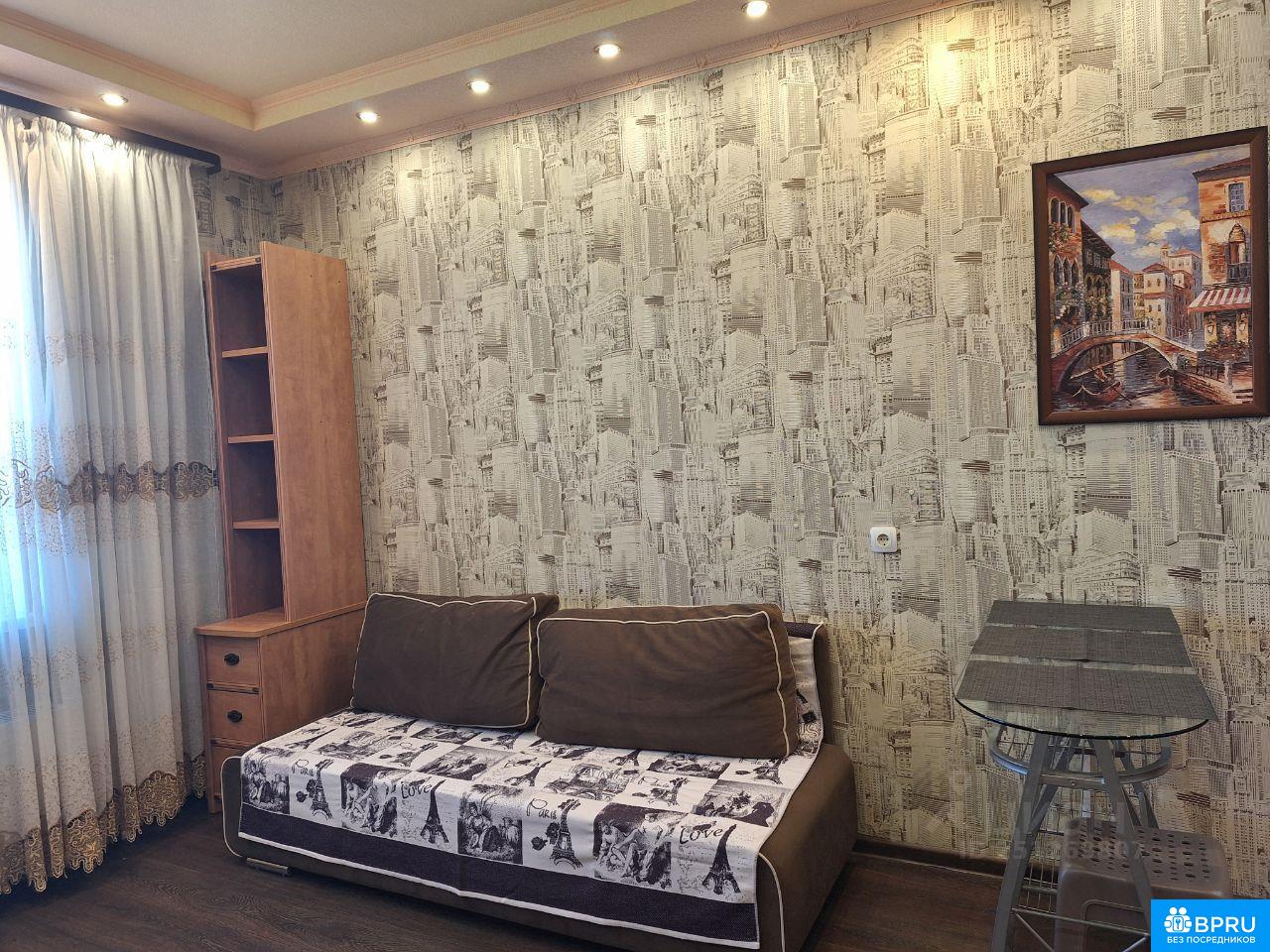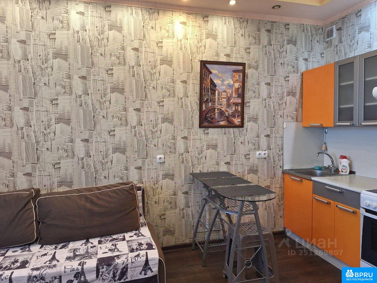 Квартира-студия, с дополнительной комнаткой, в которой расположен шкаф и холодильник, а так же вешалка и большое зеркало. В квартире есть двуспальный диван, кухонный гарнитур и обеденная зона. Холодильник, стиральная машина, электроплита, микроволновка и электрочайник, посуда. Проведён интернет. При необходимости можно рассмотреть дополнительную мебель, телевизор. Квартира чистая, есть большая лоджия.