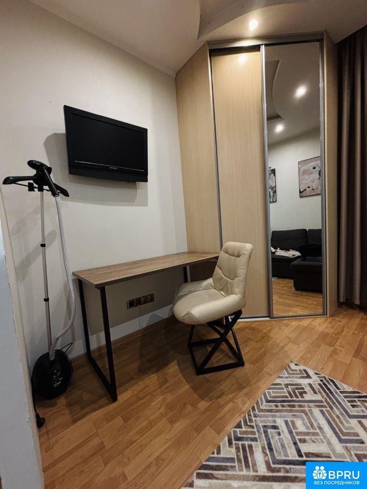 В квартире всё есть для комфортного проживания - просторный угловой шкаф-гардеробная, стиральная машина, микроволновка, плита, чайник, холодильник, гладильная доска, утюг, постельное белье, подушки, одеяла, просторный диван. Как говорится, заезжай и живи! Вид из окна - прелесть! Рядом с домом - перинатальный центр, школа, два детских сада, парк для прогулок, вкусно и точка, центр детского IT развития, спортивный центр и многое другое