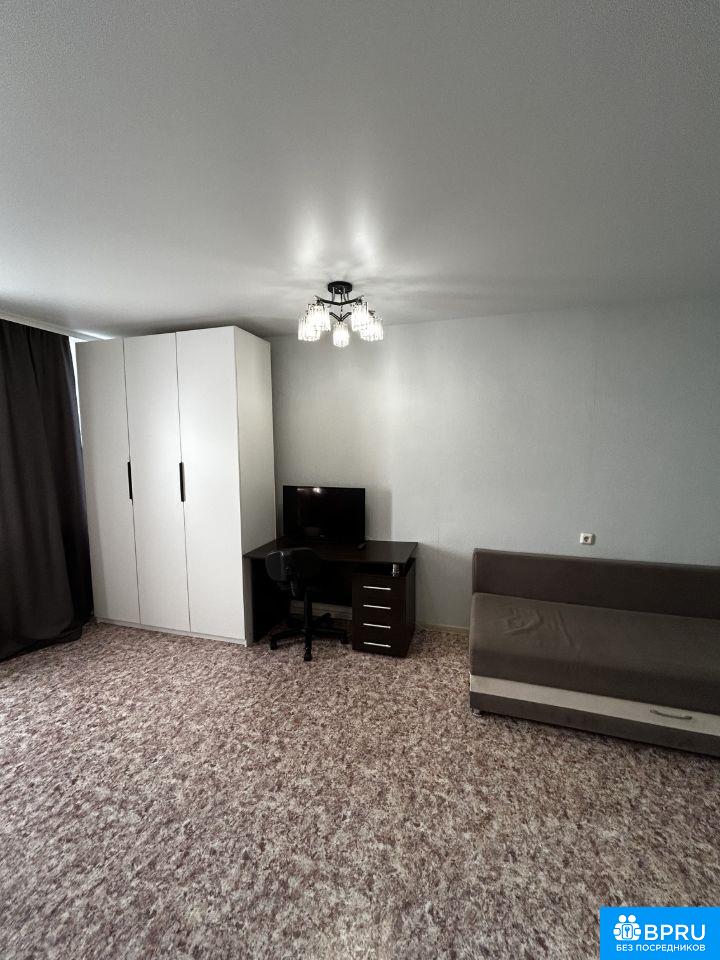 Сдается студия на длительный срок от собственника. Без комиссии. В квартире выполнен косметический ремонт. Просторная жилая зона площадью 30 мг включает в себя кухню с необходимой бытовой техникой, включая холодильник и плиту. Из мебели - вместительный шкаф и диван-кровать. В комнате также есть рабочее место с письменным столом и стулом. Санузел совмещенный, оборудован ванной и стиральной машиной. В прихожей установлен вместительный шкаф-купе. Балкон застеклен, что позволяет использовать его круглый год. Дом кирпичный, что обеспечивает хорошую тепло- и звукоизоляцию. В подьезде имеется пассажирский и грузовой лифты. Парковка открытая во дворе. Курение запрещено, можно проживание с детьми, но без животных.
