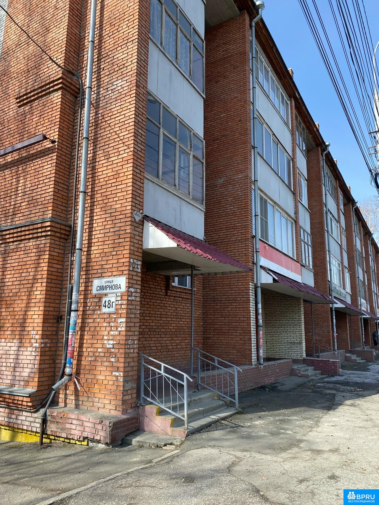 Сдам однокомнатную квартиру на ул. Смирнова, 48г. 2 этаж четырехэтажного кирпичного дома. Общая площадь - 29 кв.м., комната - 14 кв.м., кухня - 11 кв.м. Совмещенный сан. узел, есть балкон. Подъезд чистый, на площадке 3 квартиры. Оплата: ежемесячно 25 тыс. руб. + свет и вода по счетчикам