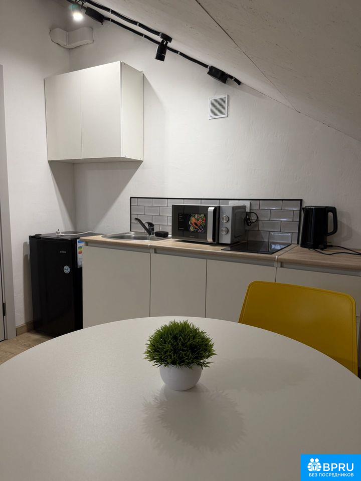 Сдам стильную студию в мансарде. 🕊️ Всё новое: свежий дизайн, кондиционер, Smart-TV, холодильник, варочная плита, СВЧ, фен.Просторная ванная с подсветкой. Тишина и уют гарантированы.Во дворе имеется зона барбекю . И собственная парковка .