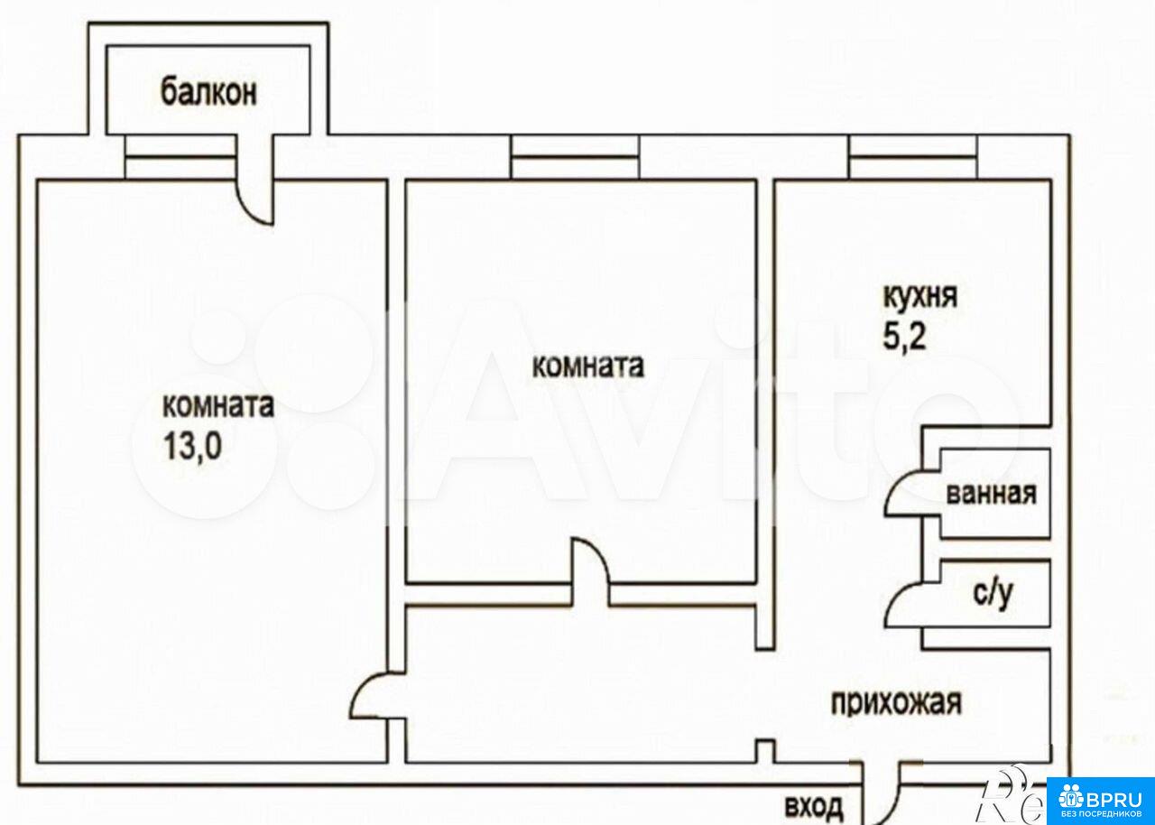 2-к квартира, 45 кв.м
