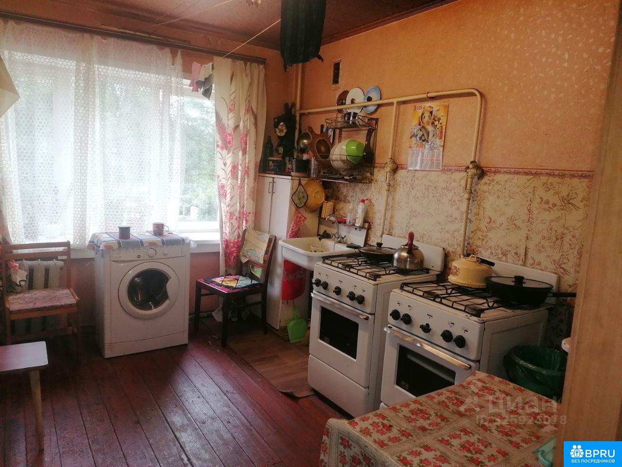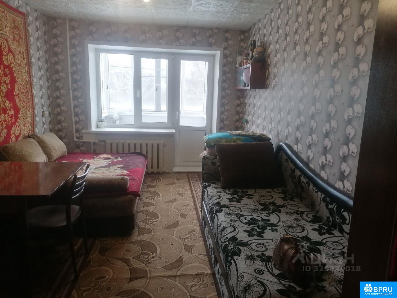 Просторная комната. В комнате:, Два дивана, шкафы, стол, холодильник. Окна выходят во двор. Рядом школа, сад, магазины.