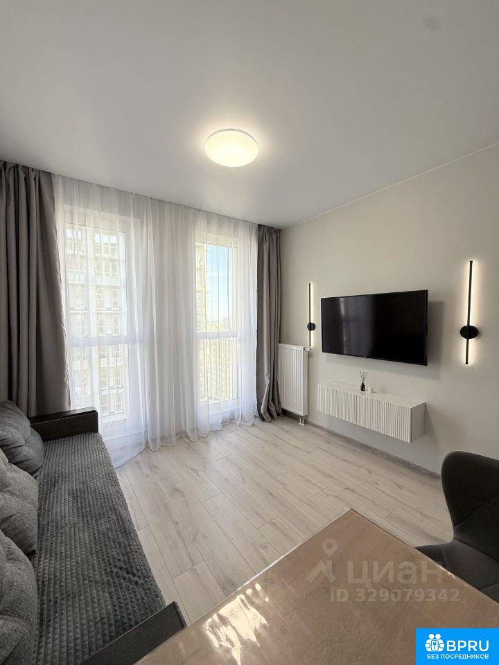 Сдается студия от собственника на длительный срок в новом кирпичном доме 2025 года постройки. В квартире выполнен свежий евро ремонт. Просторная жилая зона с современным интерьером включает диван, телевизор и обеденную зону с барными стульями. Из окон открывается приятный вид на город. Кухонная зона оборудована необходимой техникой: холодильник, плита, микроволновая печь и стиральная машина. Ванная комната совмещенная, оснащена современной сантехникой и водонагревателем. В доме два пассажирских и один грузовой лифт, имеется наземная парковка. Для детей предусмотрена игровая площадка во дворе. Курение запрещено, проживание с животными не допускается.